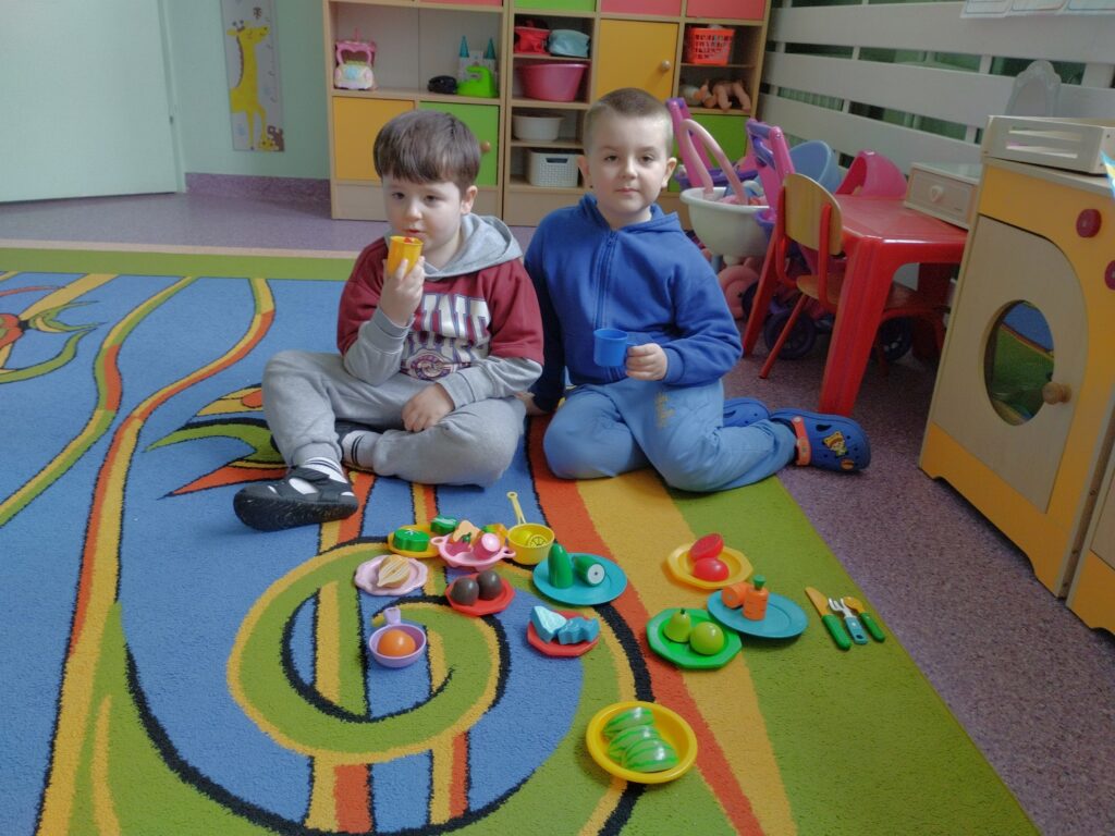 Mimo wielu zajęć mieliśmy w naszej sali również przerwę na herbatkę i jedliśmy pyszności. Spójrzcie tylko na te kolorowe talerze.