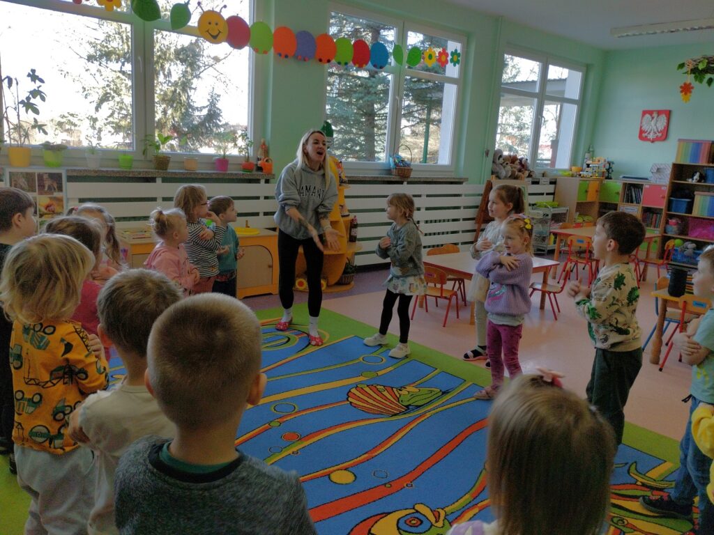 Tanecznym krokiem, za sprawą mamy naszej Blanki, powitaliśmy radośnie początek marca! Pani Patrycja przeprowadziła w naszej grupie wyjątkowe zajęcia taneczne, podczas których dzieci z wielkim zapałem obserwowały i powtarzały kroki naszego gościa. Tańcząc w rytm muzyki, na ich twarzach malowały się uśmiechy i prawdziwa radość. Pani Patrycjo, jeszcze raz serdecznie dziękujemy za podzielenie się swoją pasją i wspólną zabawą.