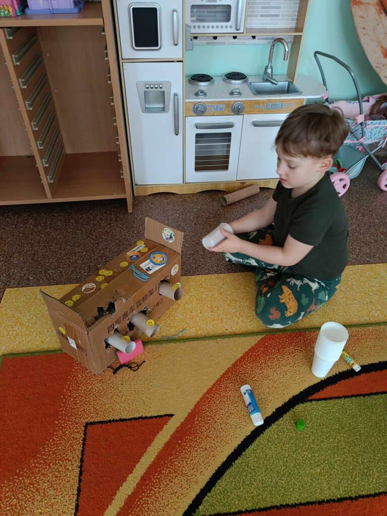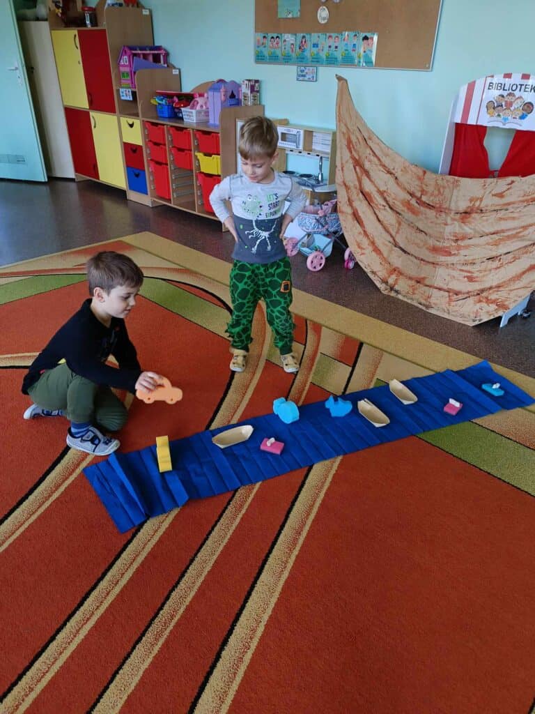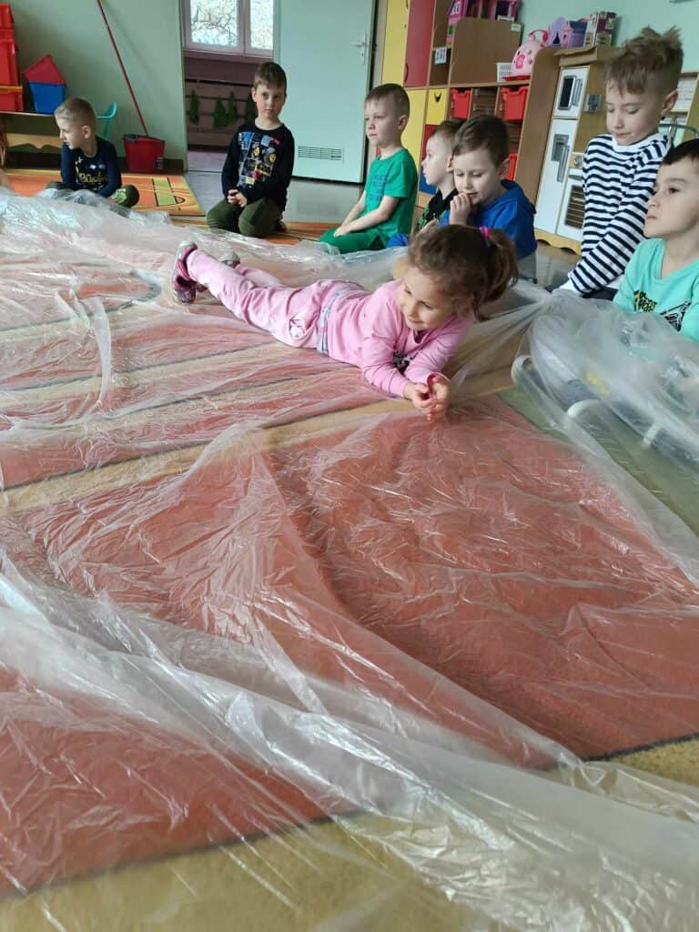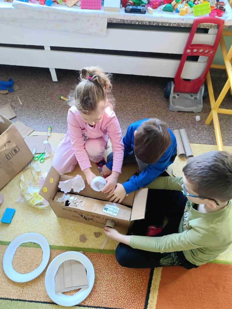 W oczekiwaniu na Panią Wiosnę, Nauczycielka przygotowała dla dzieci “Dzień bez zabawek”, który odbył się w ramach Dnia Recyklingu. Nikt nie korzystał z typowych zabawek, a wszystkie zostały zamienione na te z recyklingu. Żabki bawiły się folią, kubeczkami, kartonami, kuleczkami, gazetami i innymi rzeczami.