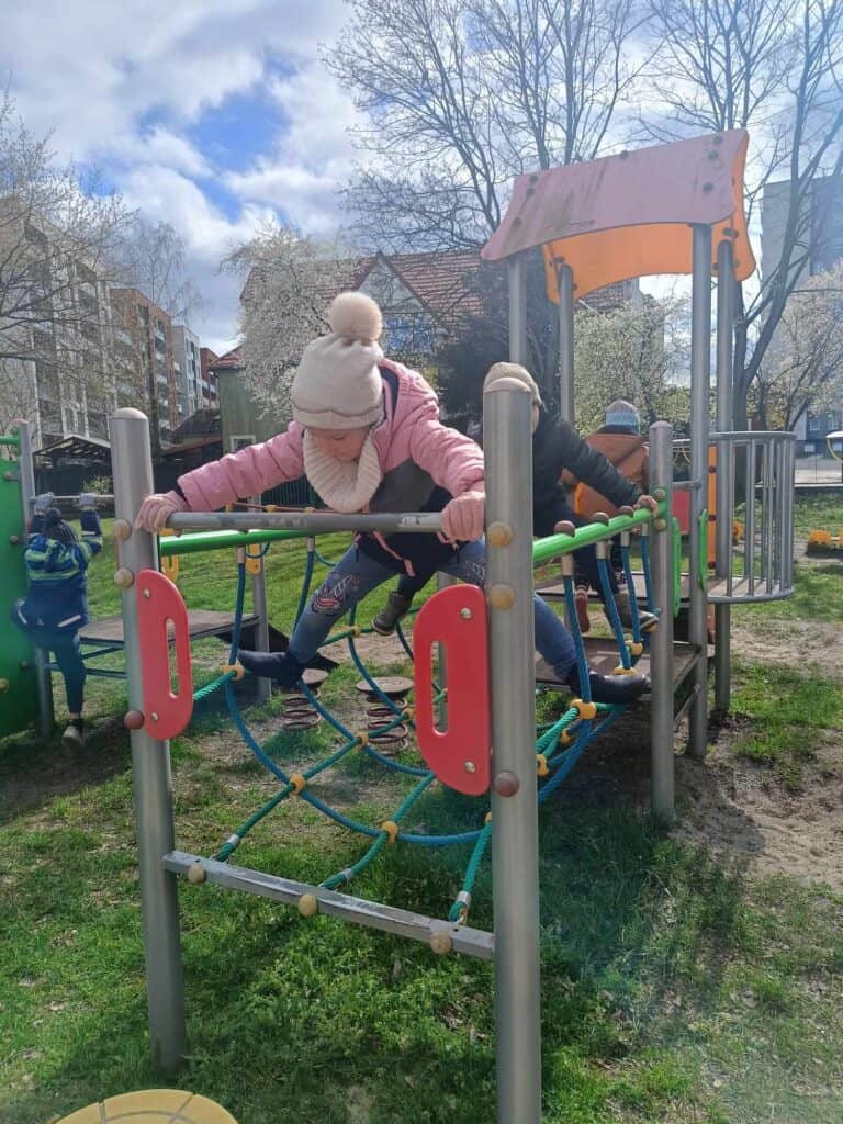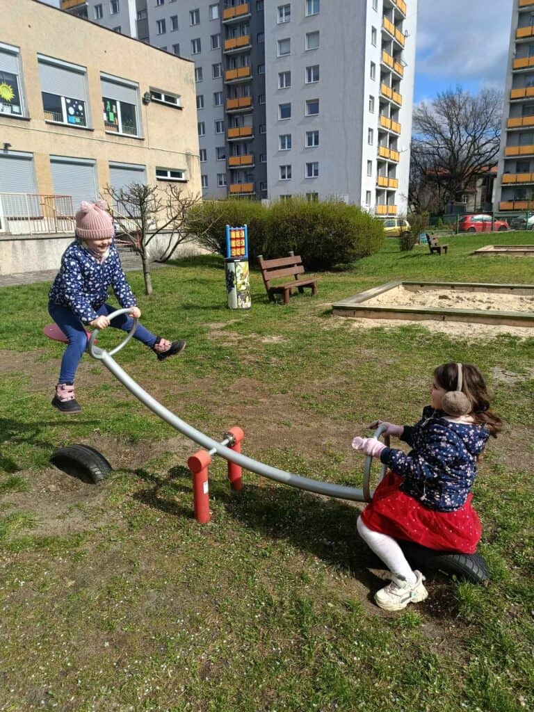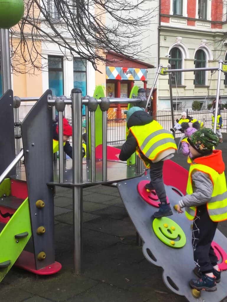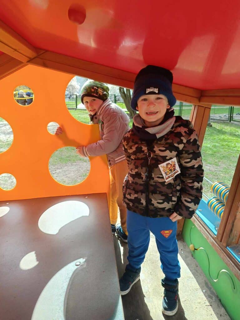 Cały miesiąc wychodziliśmy na podwórko obserwując, jak zmienia się nasz strój. Od zimowych kurtek i grubych czapek, po cienkie bluzy i czapki z daszkiem!