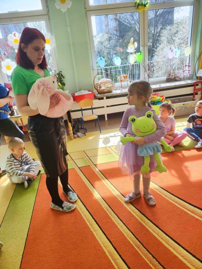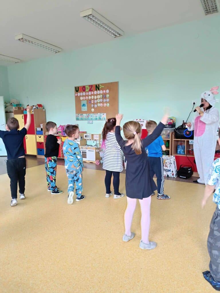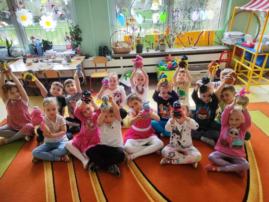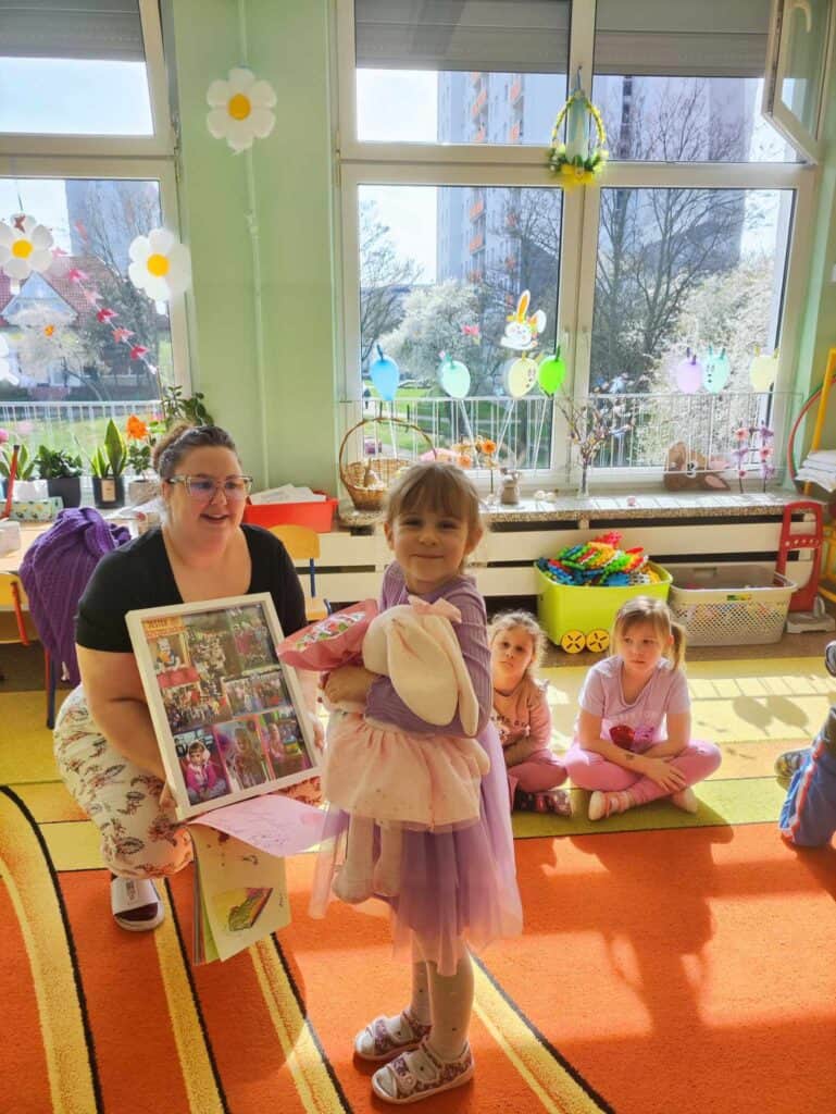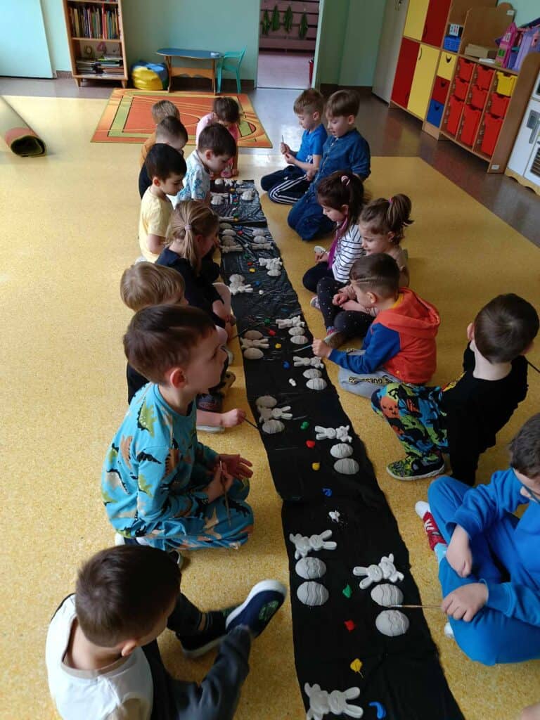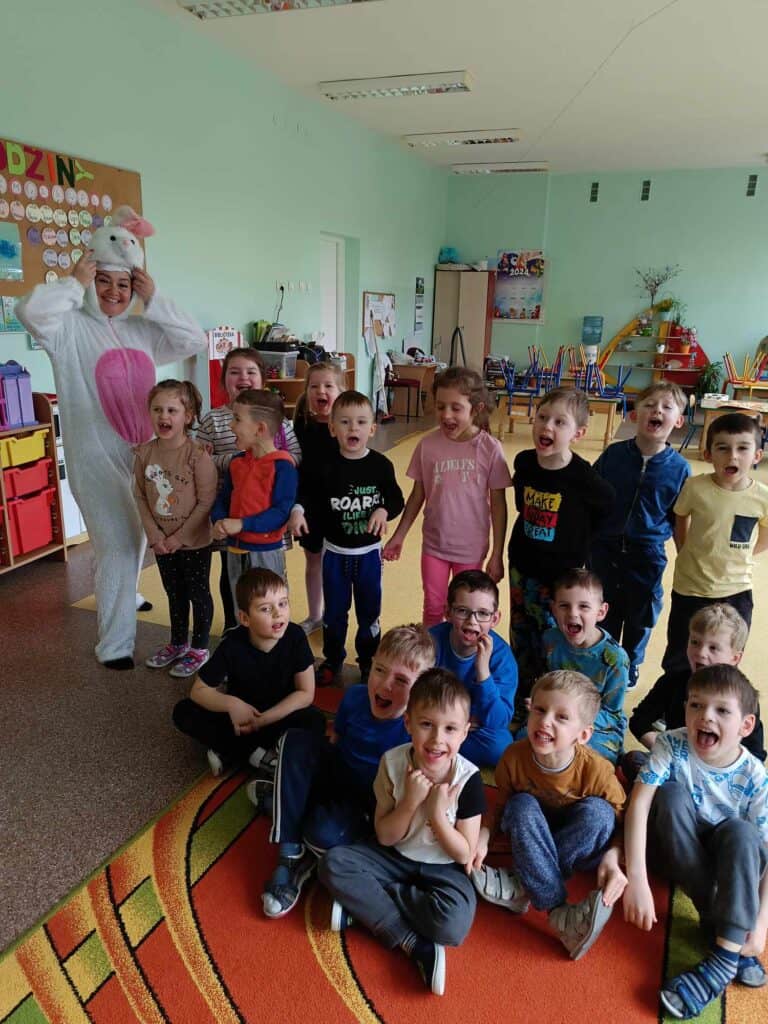 Razem z wiosną zbliżały się święta Wielkiejnocy, a co za tym szło – Żabki odwiedziła BańkoUla przebrana za nikogo innego jak Zająca Wielkanocnego! Przygotowała dla przedszkolaków warsztaty kreatywne, gdzie były malowane jajka, tańce i zabawy z bańkami. Na tym dziecięce przygotowania do Świąt się nie skończyły. Przedszkolaki wraz z Nauczycielkami zasiały rzeżuchę, a także zrobiły swoje własne ryżowe zające.
