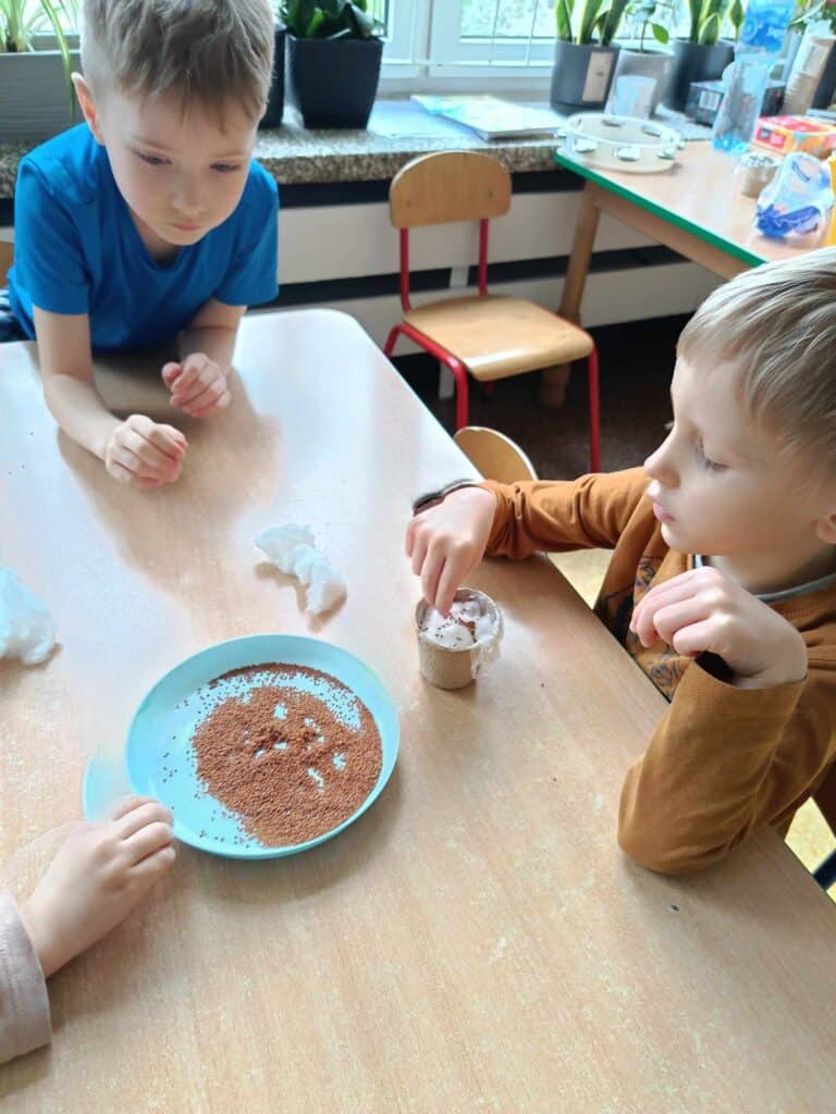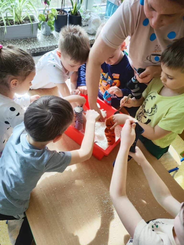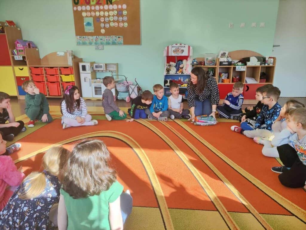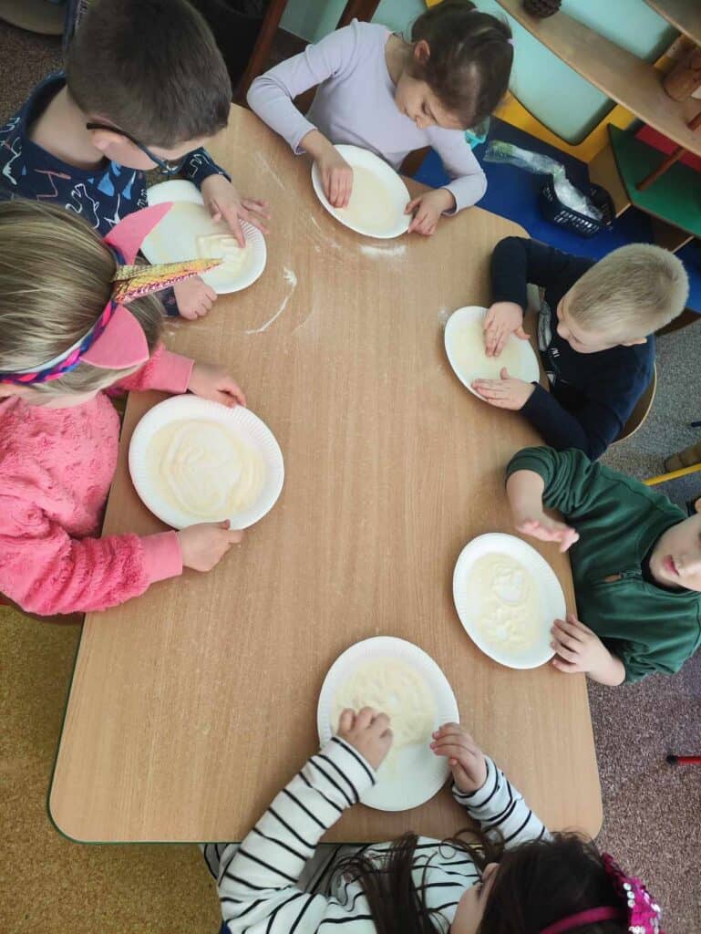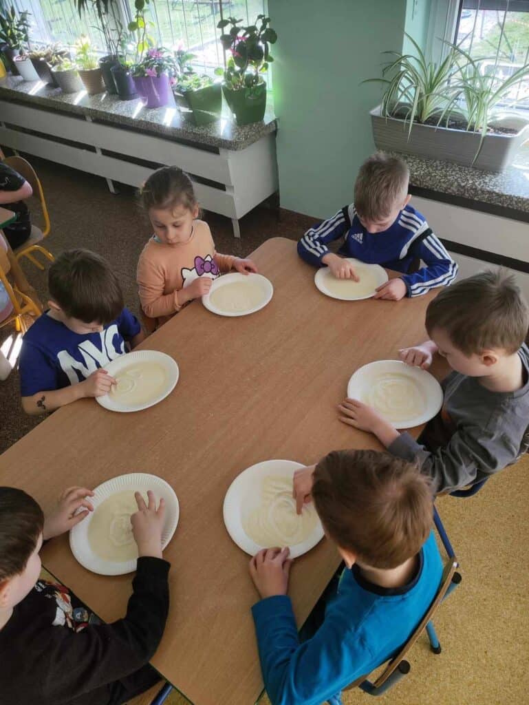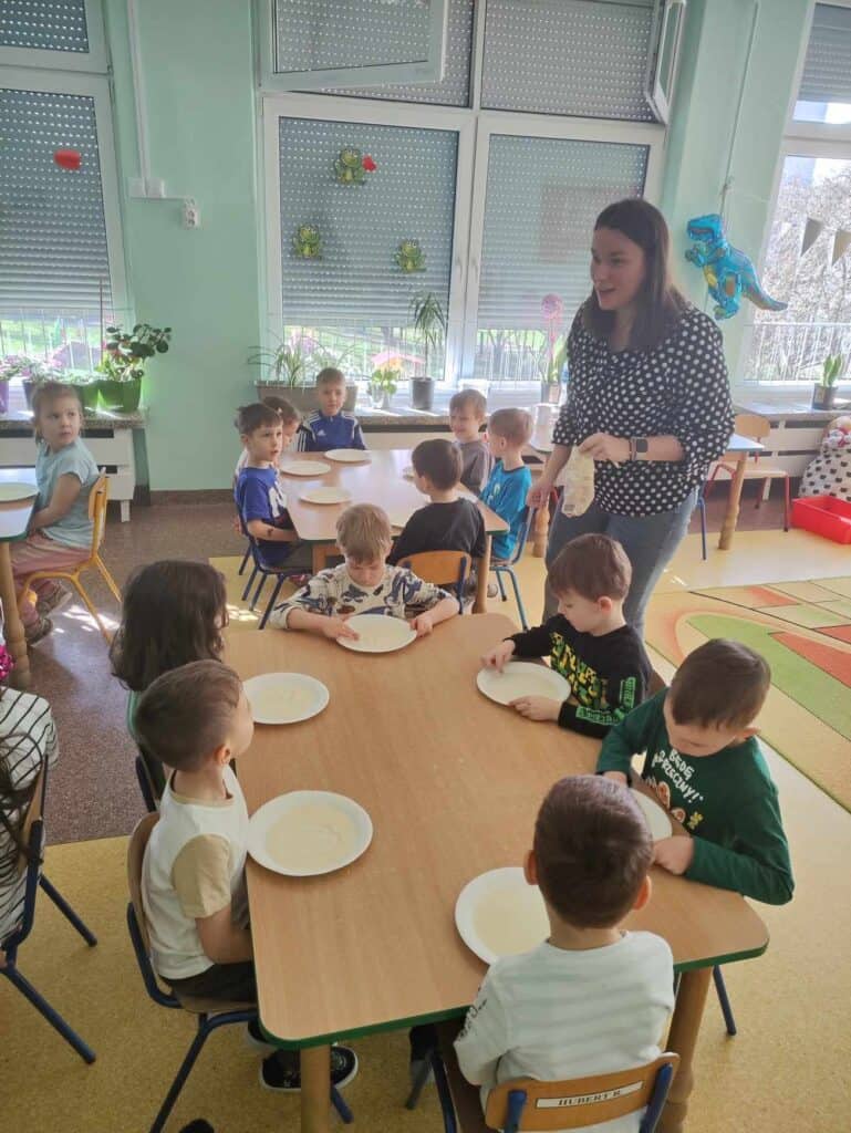 W marcu Żabki odwiedziła Mama Juliana P., która jest nauczycielką, ale uczy trochę starsze dzieci. Pokazała jak wygląda praca w klasach starszych. Dowiedzieliśmy się co to głoska, a co to litera, a także jak wygląda i brzmi litera “o”. Napisaliśmy ją na kaszy, przeczytaliśmy wspólnie i trochę się z nią pobawiliśmy. Żabki były bardzo zainteresowane nauką i na pewno sobie świetnie poradzą w przyszłych latach. Dziękujemy!