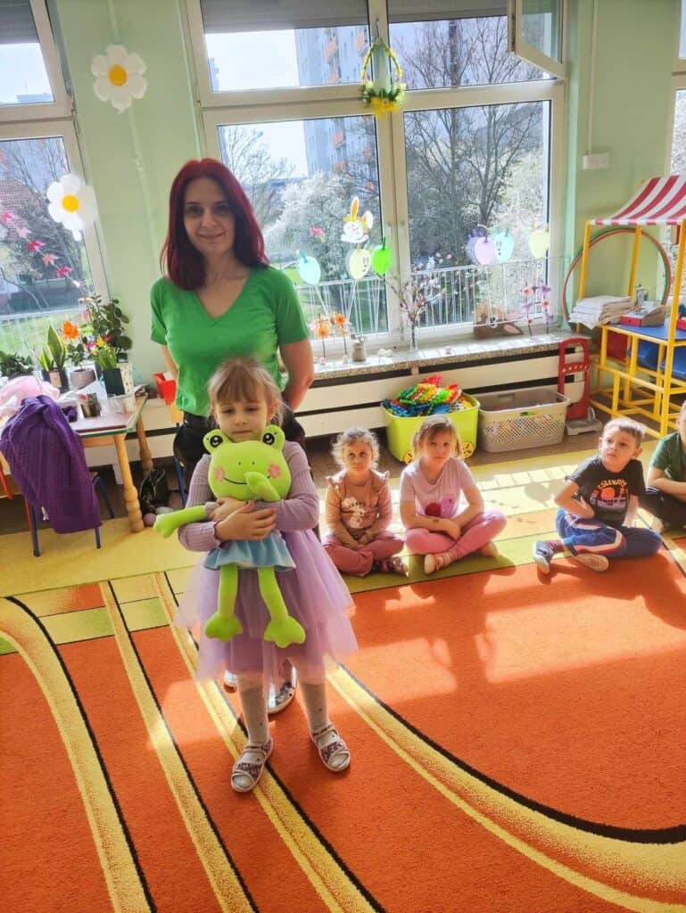 Jedna Żabka – Martynka pożegnała się z naszą grupą, zmieniając przedszkole. Wszyscy przygotowali dla niej laurki, a ona przygotowała dla dzieci upominki. Martynka zostawiła na sali swoją przyjaciółkę Żabkę Martynkę, a w zamian dostała króliczka, który będzie jej o nas przypominał. Już za Tobą tęsknimy! Życzymy super kolegów w nowej grupie i samych sukcesów. Do zobaczenia!