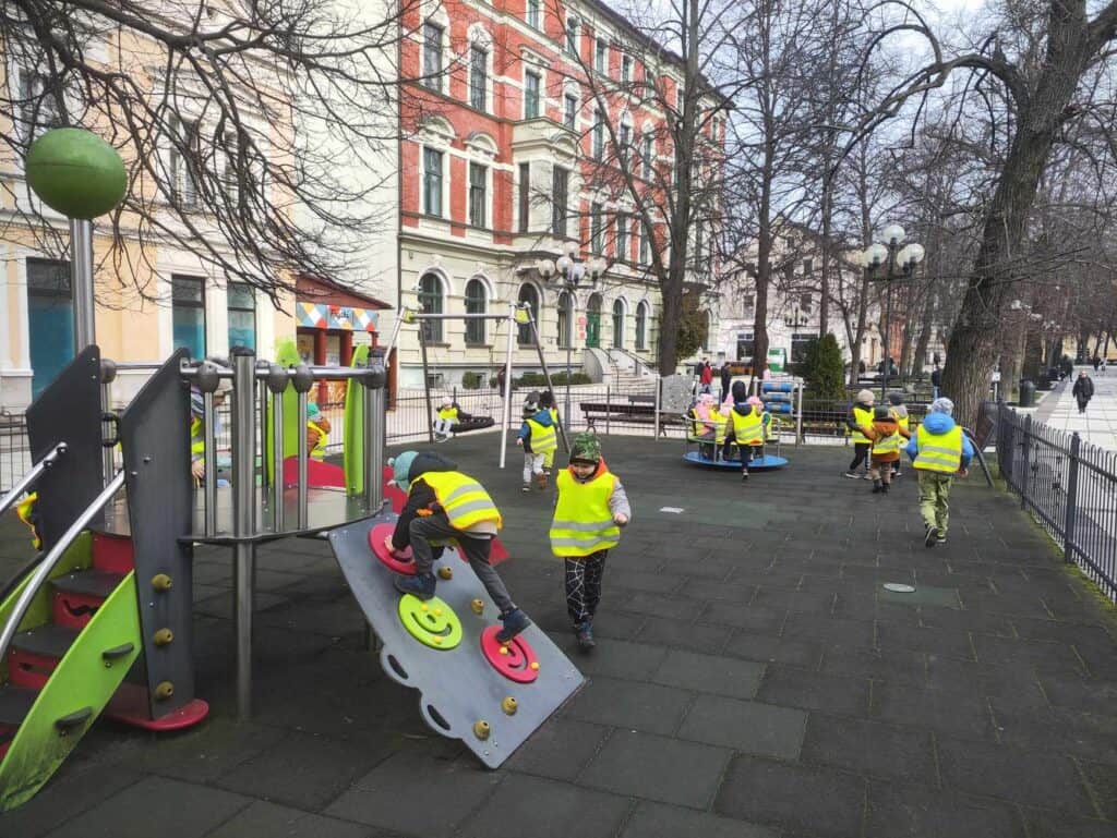 Marzec przyniósł ze sobą ogromną dawkę ciepła, promieni słonecznych i pierwszych oznak wiosny. Żabki w tym miesiącu spędzały coraz więcej czasu na placu przedszkolnym, a także wychodziły poza jego granice, by porozglądać się za Panią imieniem Wiosna. Pierwszego dnia marca Żabki wraz z Nauczycielką wybrały się na spacer do pizzerii. Było to ich pierwsze dalekie wyjście w tym roku i poradziły sobie naprawdę świetnie! Po drodze oglądały filharmonię, wystawiały twarze do słońca, czy odpoczywały na ławeczkach ciesząc się z nadchodzącego wspólnego posiłku. Na wiosnę jeszcze trzeba było poczekać, bo na głowach wciąż były czapki, a i kurtki były dość grube. Gdzie ta wiosna?