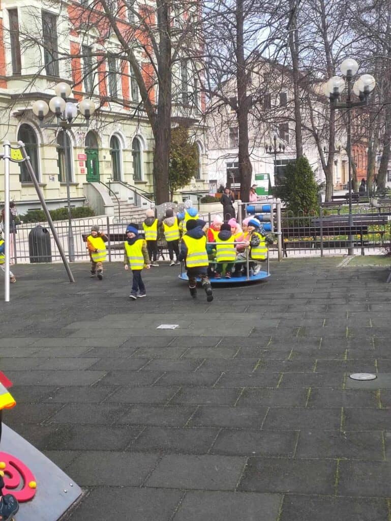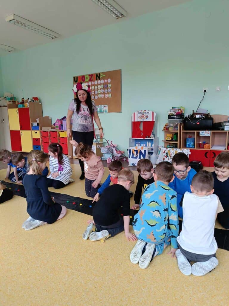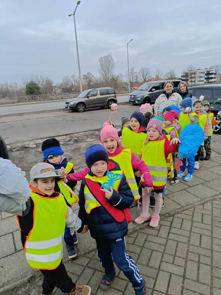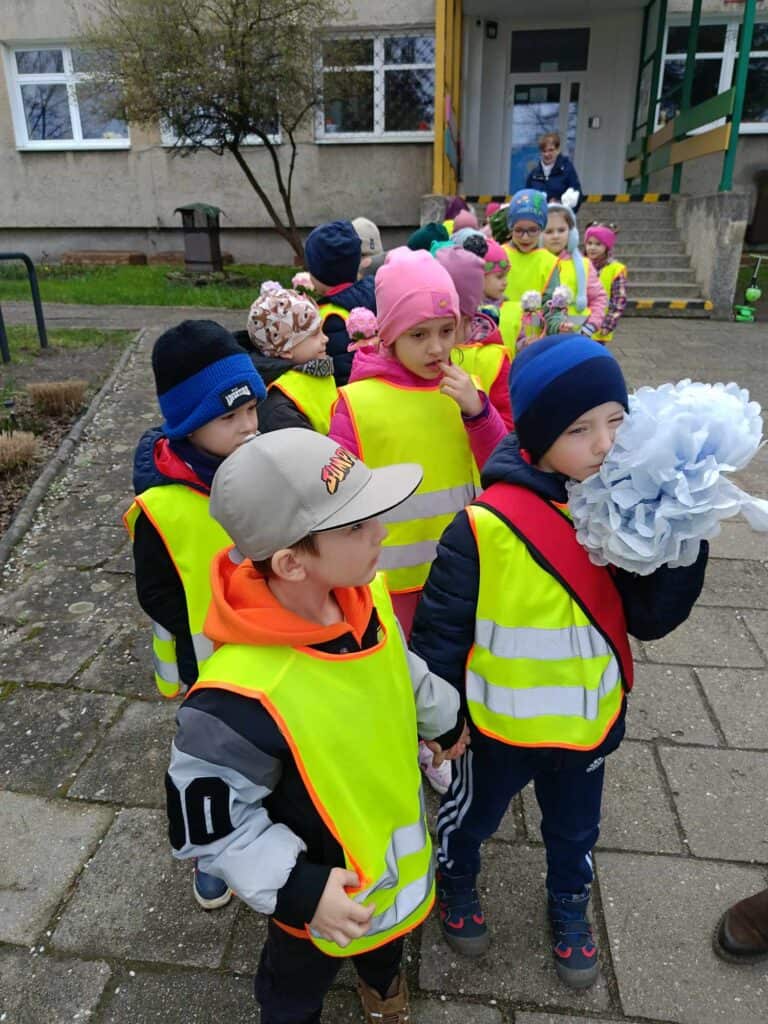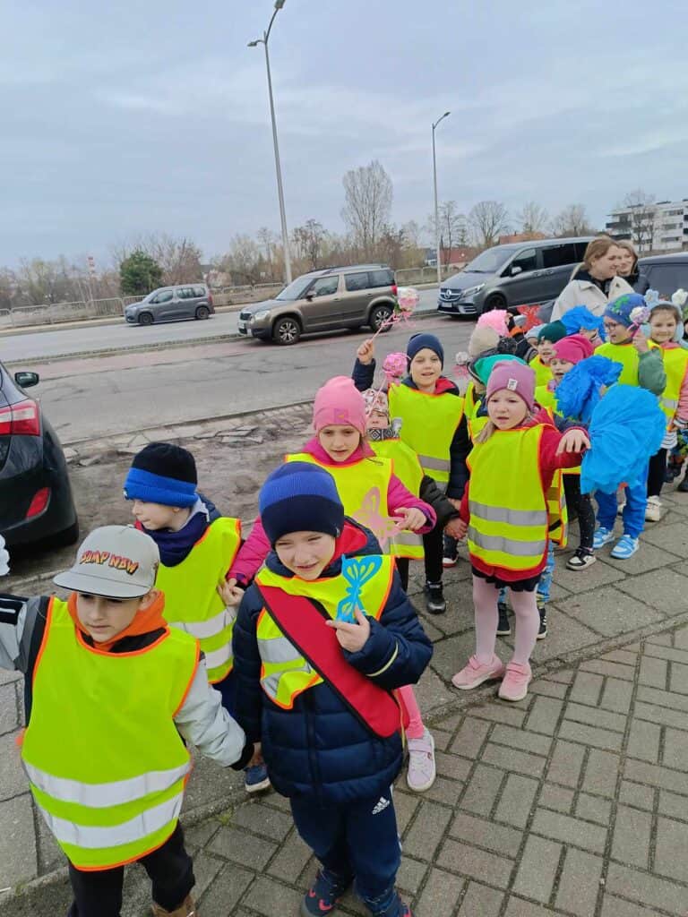 Nadszedł ten dzień. Słońce było wysoko na niebie, ptaki głośno śpiewały i pierwsze ciepłe powiewy wiatru świadczyły o tym, że można było się udać na wycieczkę. Wycieczkę w poszukiwaniu Pani Wiosny! Dzieci poszły przed siebie, na boisko, dookoła pobliskiego osiedla w poszukiwaniu najmniejszych, zielonych oznak nadejścia tej ciepłej pory roku. Zabrały ze sobą motyle, kwiaty i inne ozdoby, by wiosna wiedziała dokąd zmierzać i na pewno do nas trafiła.