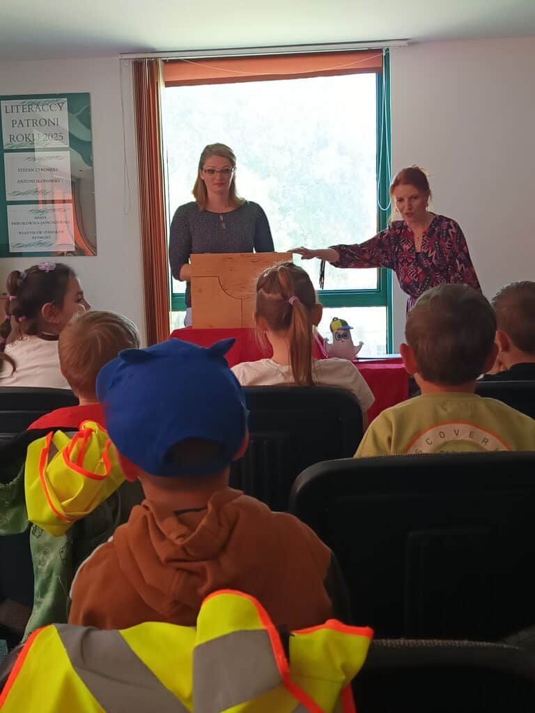 Żabki na specjalnie zaproszenie wybrały się do Wojewódzkiej Biblioteki Pedagogicznej na teatrzyk kamishibai. Panie bibliotekarki przygotowały dla małych widzów bajkę pt. „Przygody pingwinka Pingo”. Sympatyczny pingwinek zachęcał dzieci do ratowania i ochrony naszej planety Ziemi, a także pomógł zrozumieć potrzebę działań ekologicznych. Poruszany temat bardzo zainteresował Żabki, chętnie odpowiadały na pytania dotyczące wiedzy ekologicznej i recyklingu. Nasze starszaki spisały się na medal!
