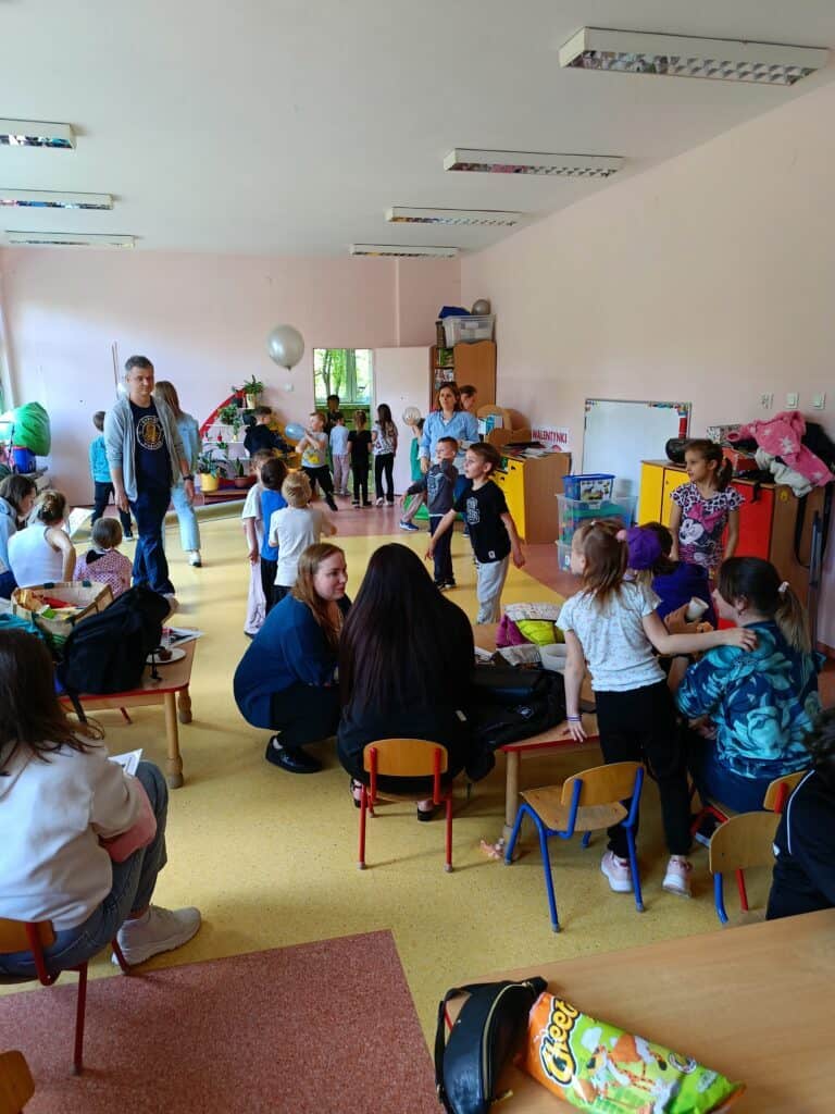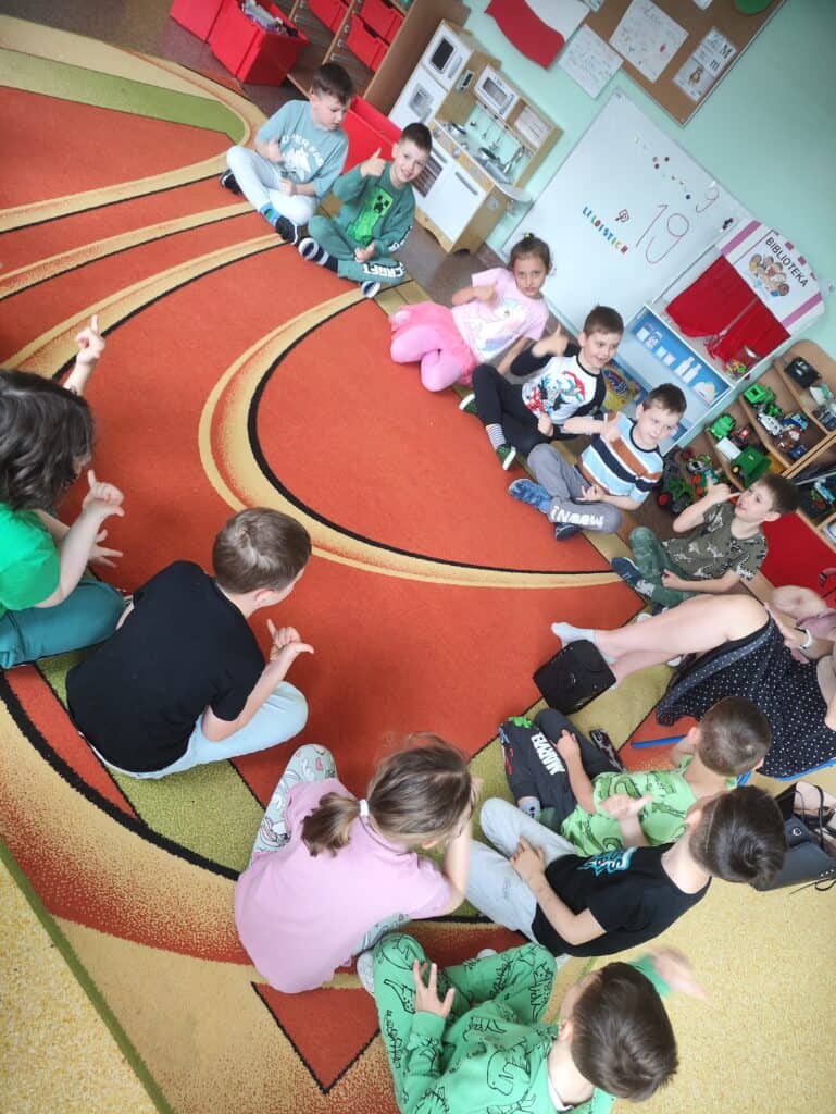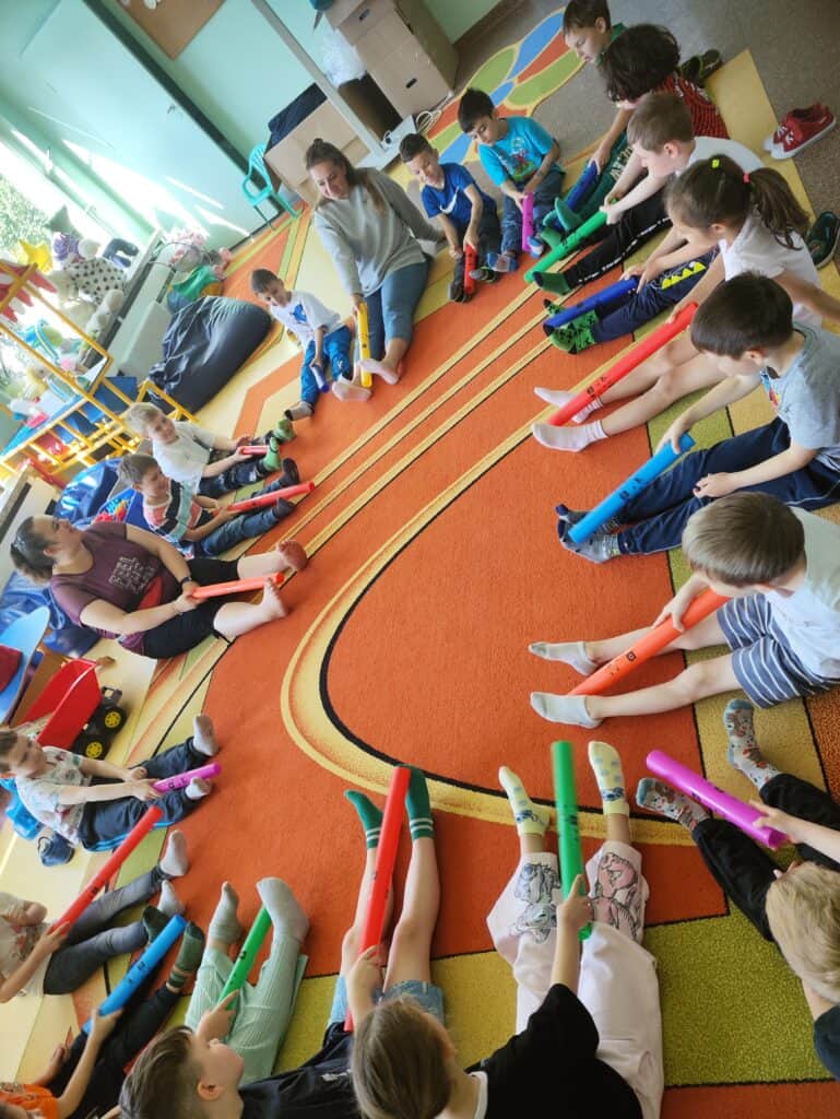 Maj obfitował w ciekawe zajęcia. Pani psycholog przeprowadziła zajęcia uważności z wykorzystaniem rurek bum, bum. Jak co miesiąc odwiedziła nas również Pani Ela, która wprowadza w podstawy polskiego języka migowego. Dzieci radzą sobie świetnie i poczyniły spore postępy.