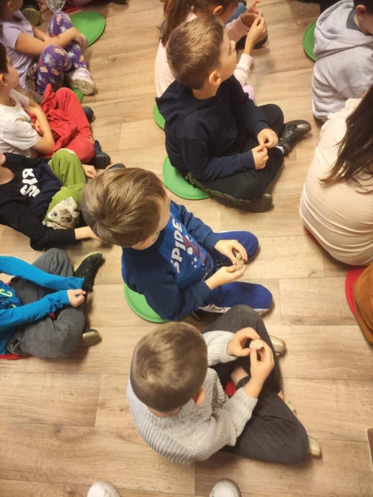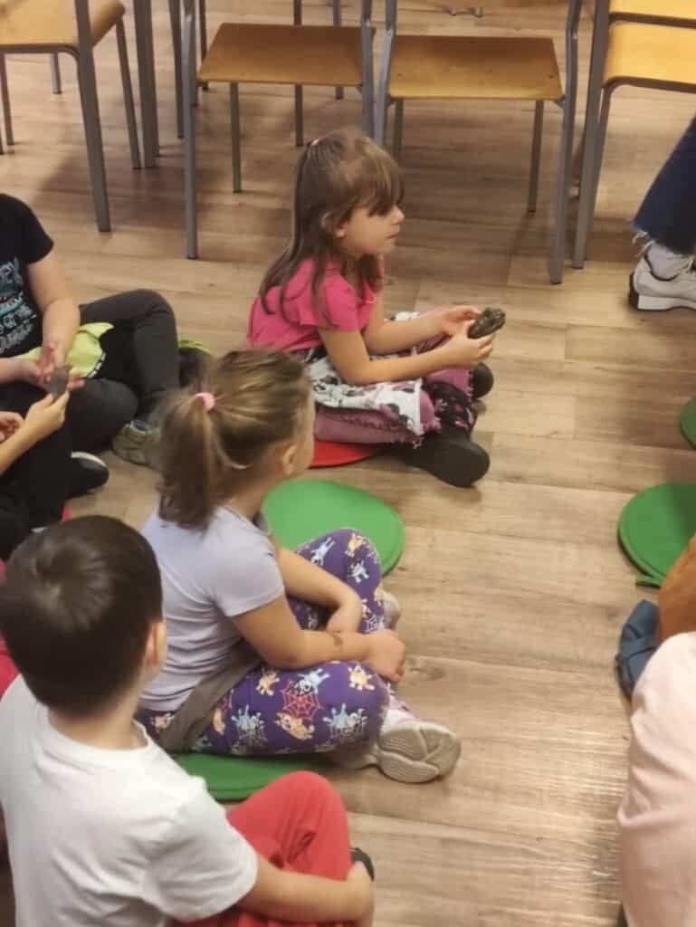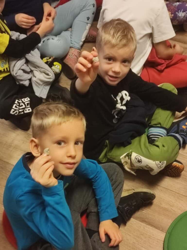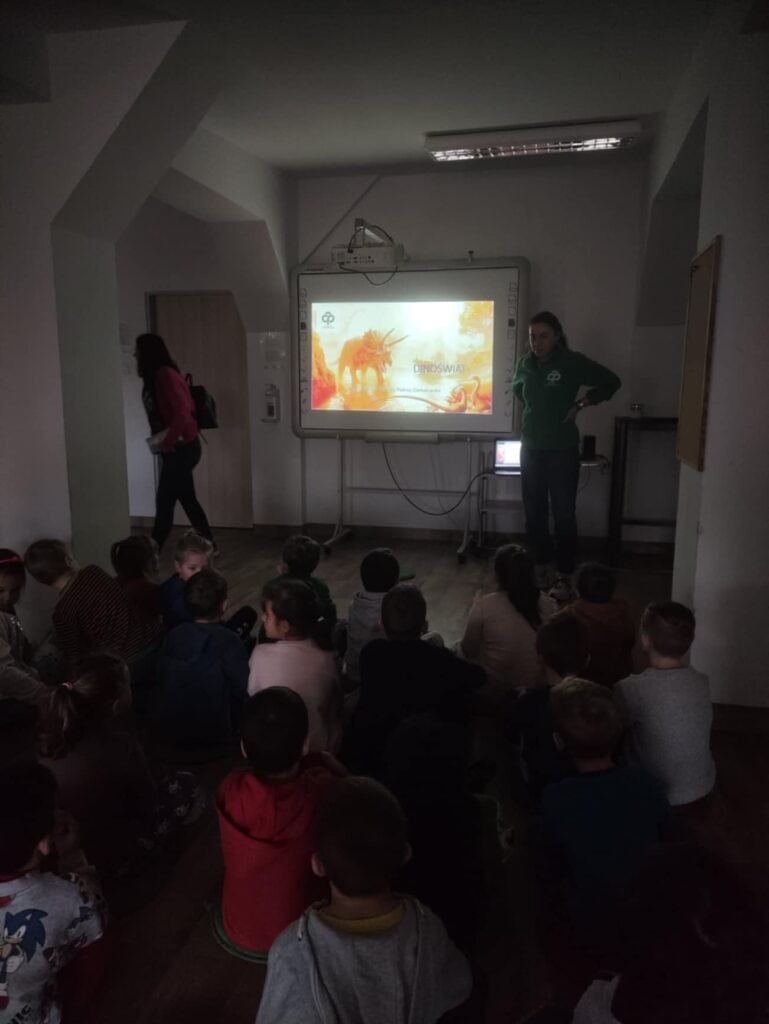 Na Dzień Dinozaura Nauczycielki zabrały Żabki do Centrum przyrodniczego, gdzie została im przedstawiona prezentacja na temat dinozaurów i skamielin. Na własne oczy mogły zobaczyć niektóre z nich, a nawet potrzymać je w dłoni. Na sam koniec każde z dzieci stworzyło swoją własną skamielinę.