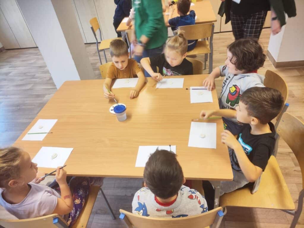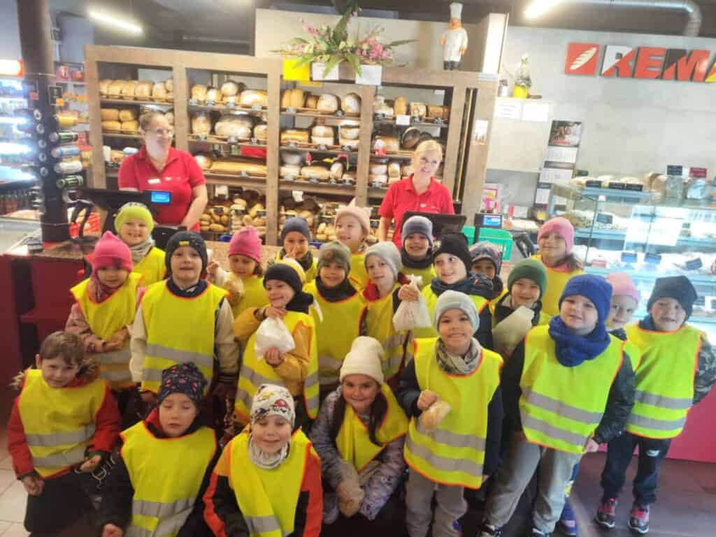 W październiku Żabki obchodziły Dzień Chleba i Dzień Dinozaura. Jak chleb to… Położona nieopodal piekarnia, do której dzieci udały się wraz z nauczycielką. Przedszkolaki dostały pieniądze i pod okiem nauczycielki miały okazję kupić to, na co miały ochotę za wyznaczony im budżet. Oczywiście wszystkiego po powrocie mogły spróbować. Dzieci były zdziwione ile jest rodzajów pieczywa, ale doskonale wiedziały, jak się je wytwarza.