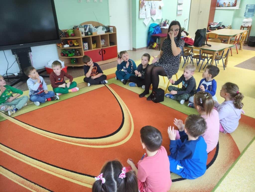 Jak co miesiąc do Żabek przyszła pani nauczająca języka migowego. Dzieci migają nawet podczas przerw, czy w trakcie zabawy. Idzie im to coraz lepiej!
