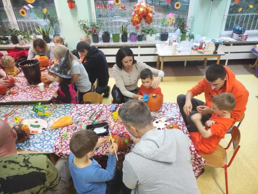Ostatniego dnia października, Żabki zaprosiły rodziców na warsztaty dyniowe. Wszyscy obecni drążyli, ozdabiali i oklejali swoje dynie tak, że wychodziły piękne arcydzieła. Część z nich powędrowała do domu, a część dalej stroi naszą salę.