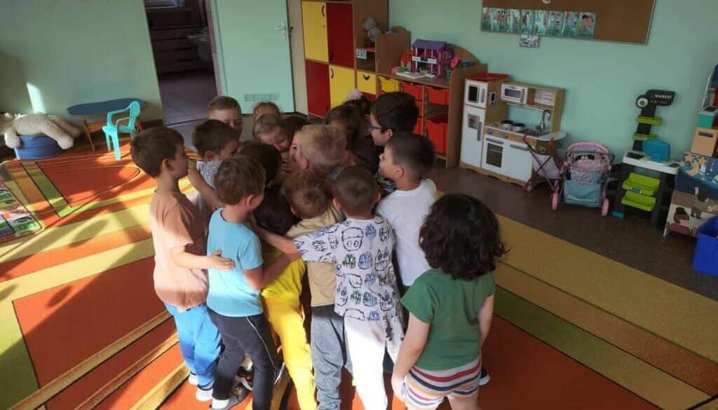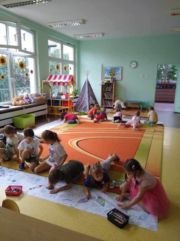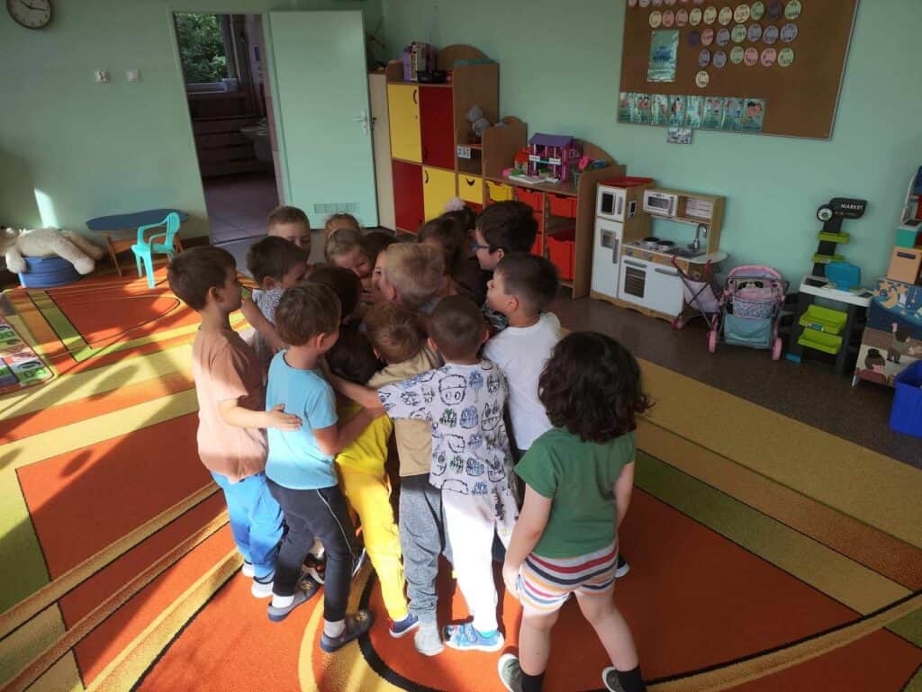 Wakacje dobiegły końca! Wrzesień przyszedł szybciej niż mogłoby się wydawać, a razem z nim powrót do przedszkola. Żabki radośnie wkroczyły do nowej sali, witając się z Nauczycielkami, kolegami i koleżankami. Pierwsze dni przebiegły na rozmowach, przypomnieniu dzieciom organizacji dnia, nauczeniu się „co i gdzie” znajduje się w nowej sali. Żabki szybko weszły w rytm dnia, zabawę z rówieśnikami, pracę z Paniami z uśmiechem witając kolejne dni w których nie było czasu na nudę.