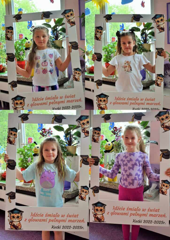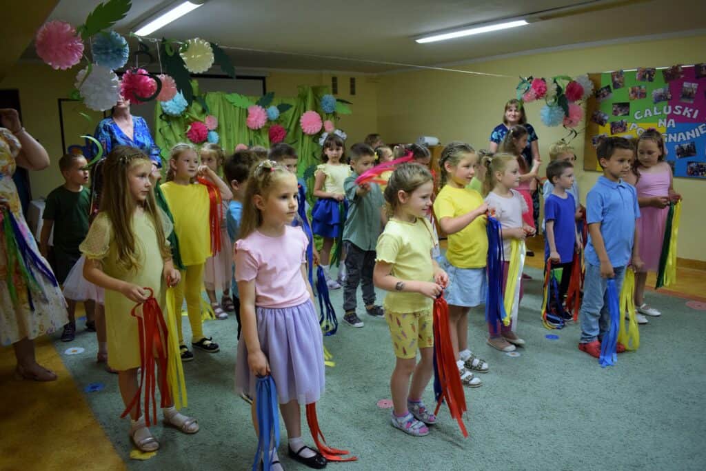Później przyszedł moment, na który wszyscy czekali – występ przygotowany przez Kotki. Dzieci zaprezentowały wzruszające wiersze, piosenki i podziękowania dla rodziców, nauczycieli oraz swoich koleżanek i kolegów z przedszkola. Niejedna łezka zakręciła się w oku – nie tylko dorosłym, ale i samym dzieciom. Bo choć cieszą się na nowe przygody w szkole, to żegnanie się z przedszkolem i sobą nawzajem wcale nie było łatwe.