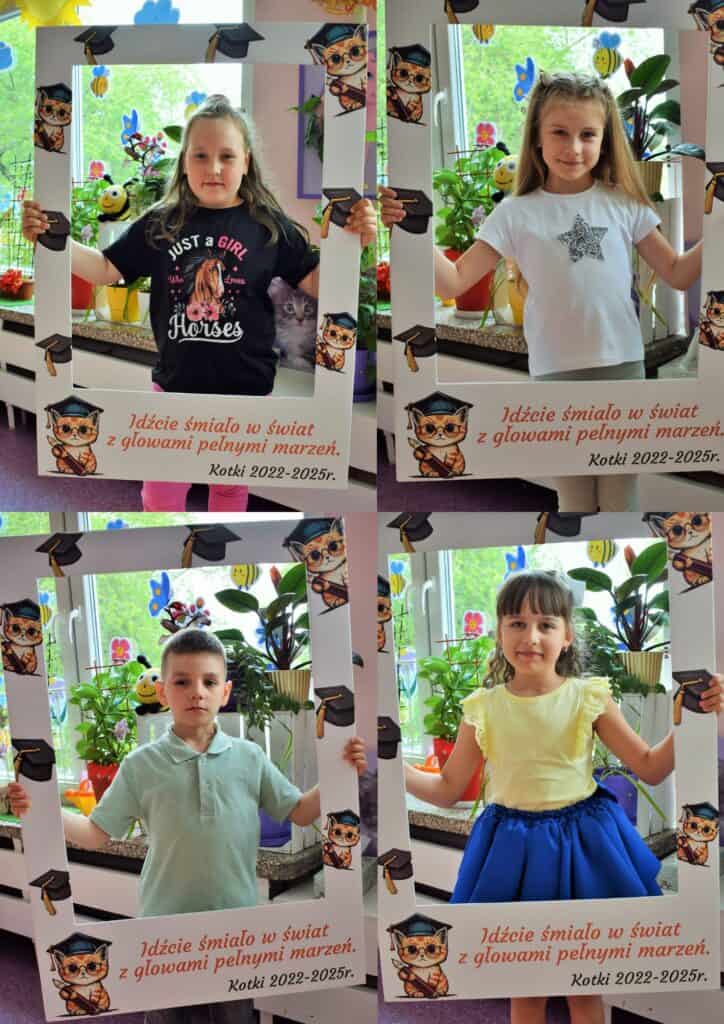 Później przyszedł moment, na który wszyscy czekali – występ przygotowany przez Kotki. Dzieci zaprezentowały wzruszające wiersze, piosenki i podziękowania dla rodziców, nauczycieli oraz swoich koleżanek i kolegów z przedszkola. Niejedna łezka zakręciła się w oku – nie tylko dorosłym, ale i samym dzieciom. Bo choć cieszą się na nowe przygody w szkole, to żegnanie się z przedszkolem i sobą nawzajem wcale nie było łatwe.