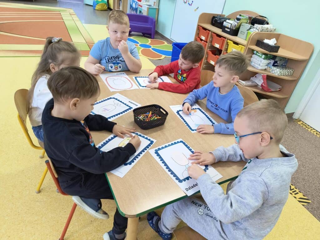 Zbliżające się święto Babci i Dziadka było inspiracją do działań artystycznych. Choć uroczyste przedstawienie odbędzie się w późniejszym terminie, dzieci już teraz z zaangażowaniem przygotowywały się do tego wydarzenia. Powstały wyjątkowe prace plastyczne – portrety Babci i Dziadka, w które dzieci włożyły wiele serca, staranności i dziecięcej wrażliwości.