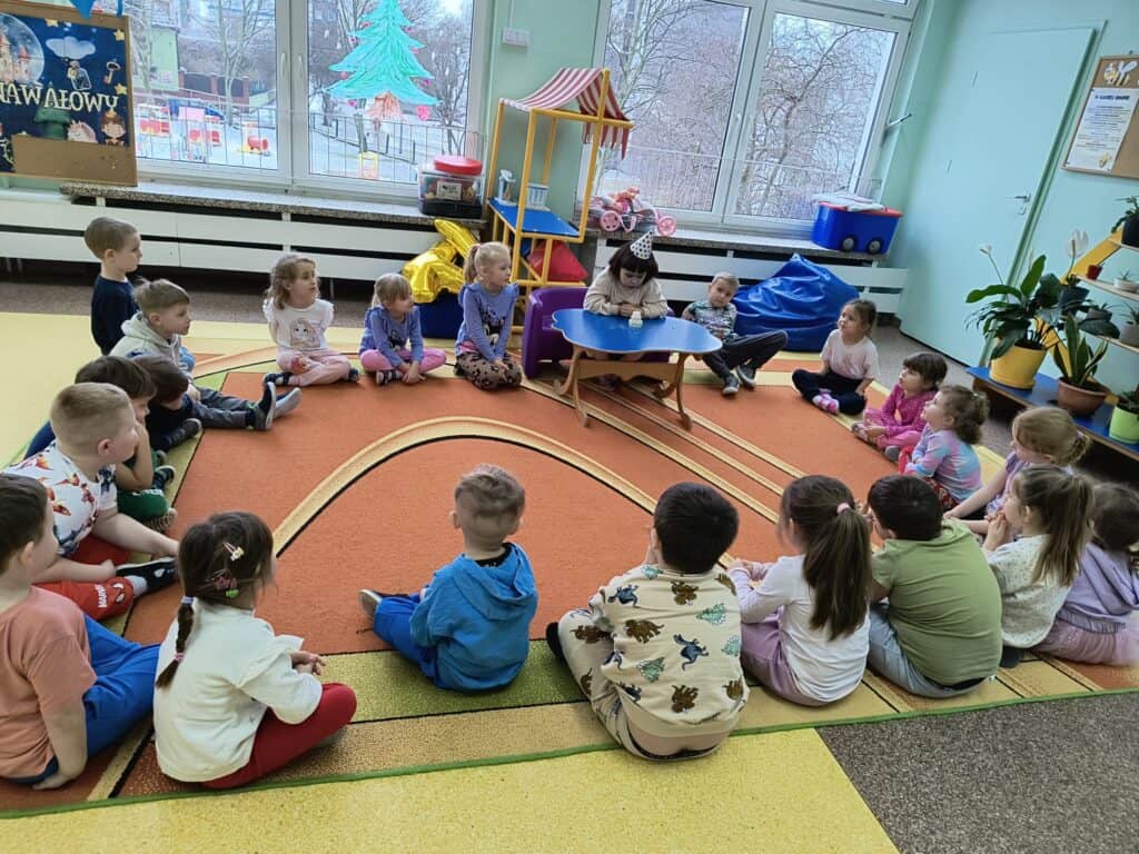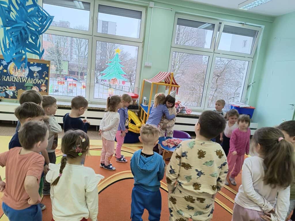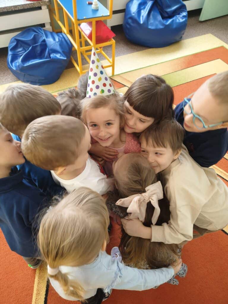 W styczniu świętowaliśmy także urodziny Ewy, Kai, Darii oraz Mai. Wspólne śpiewanie „Sto lat”, życzenia i chwile radości stworzyły ciepłą, rodzinną atmosferę, tak ważną w budowaniu relacji w grupie.