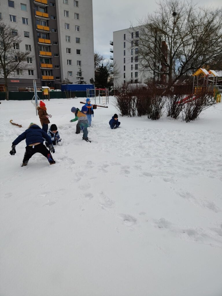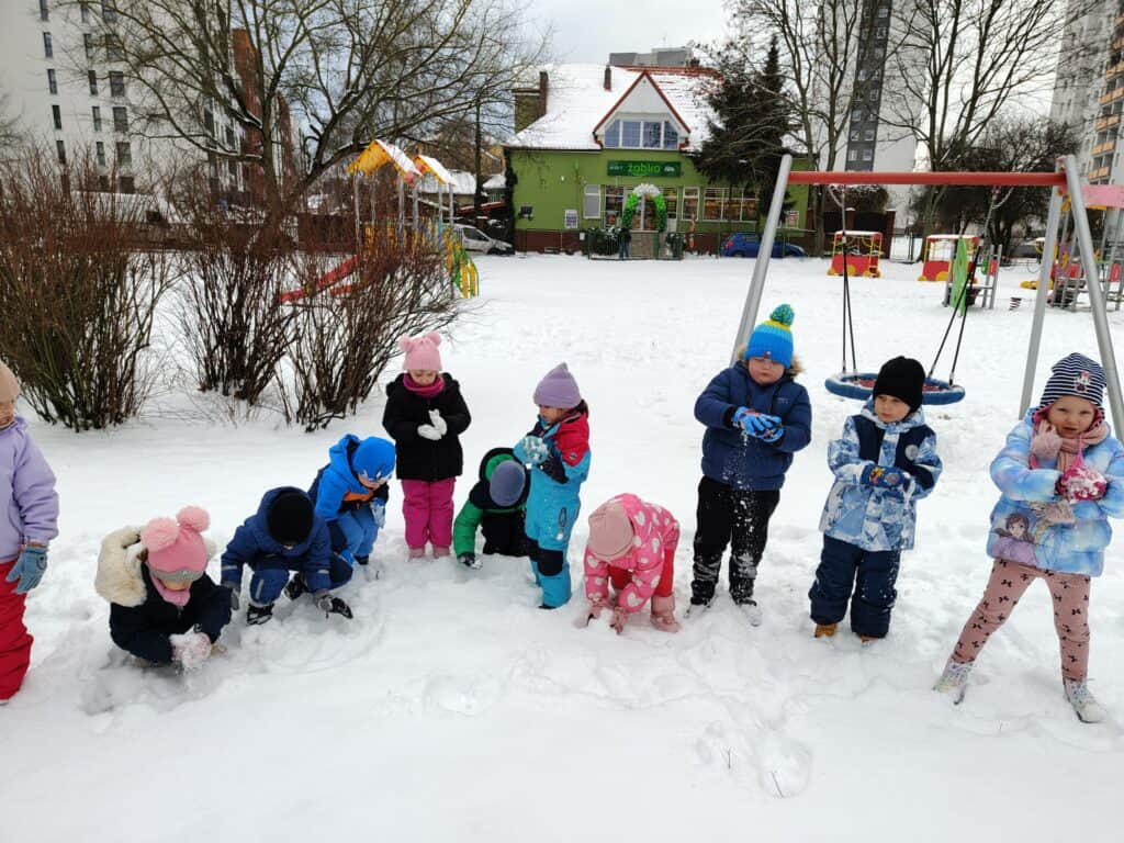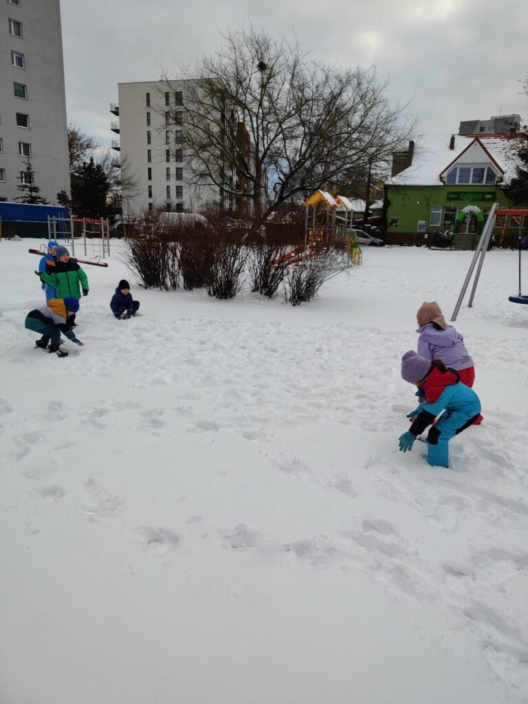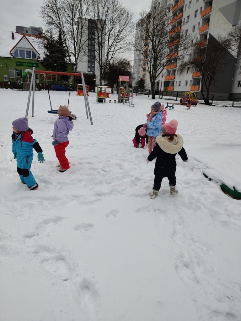 Nowy rok przywitaliśmy z ogromną energią i ciekawością świata. Styczeń przyniósł nam prawdziwie zimową aurę, wiele nowych doświadczeń, a także wyjątkowe wydarzenia, które na długo pozostaną w pamięci naszych przedszkolaków. Pierwsze tygodnie miesiąca upłynęły pod znakiem zimowych obserwacji i zabaw na świeżym powietrzu. Dzieci z radością korzystały z uroków śnieżnej pogody, a każda wyjście do ogrodu przedszkolnego stawało się okazją do nauki poprzez działanie. Rozmawialiśmy o tym, że każdy płatek śniegu jest niepowtarzalny i nie istnieją dwa identyczne – ta informacja wzbudziła ogromne zdziwienie i wiele pytań. Poznaliśmy również proces powstawania śniegu oraz dowiedzieliśmy się, dlaczego śnieg topnieje, gdy robi się cieplej. Zimowej teorii towarzyszyła praktyka: odbyła się prawdziwa bitwa na śnieżki, powstawały aniołki na śniegu, a rumieńce na twarzach dzieci były najlepszym dowodem na to, jak wiele radości przynosi wspólna zabawa. Uzupełnieniem tych doświadczeń była praca plastyczna „Śnieżynka”, podczas której dzieci tworzyły delikatne, zimowe kompozycje rozwijając precyzję i wyobraźnię.