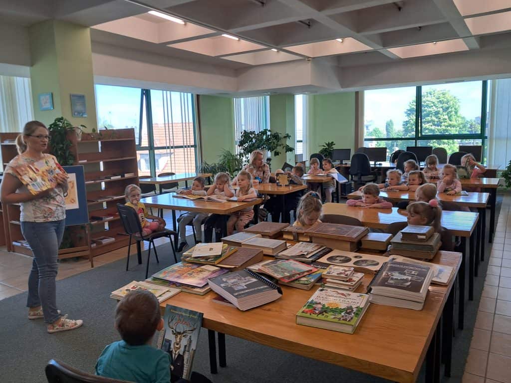 W maju odbyła się również wycieczka do Wojewódzkiej i Miejskiej Biblioteki Publicznej im. Cypriana Norwida w Zielonej Górze. Wyjście zostało zorganizowane z okazji „Dnia Bibliotekarza”. Podczas wycieczki dzieci zostały oprowadzone po Bibliotece przez mamę Martynki W. Pani Ania opowiedziała przedszkolakom na czym polega zawód bibliotekarza, oprowadziła po różnych pomieszczeniach, a także opowiedziała, jak można wypożyczać książki. Podczas wycieczki dzieci miały okazję obejrzeć wiele ciekawych pozycji przeznaczonych dla najmłodszych, a także wypożyczyć wybrane książki na kilka dni do przedszkola.