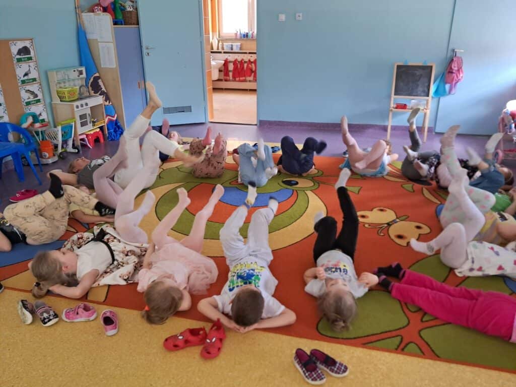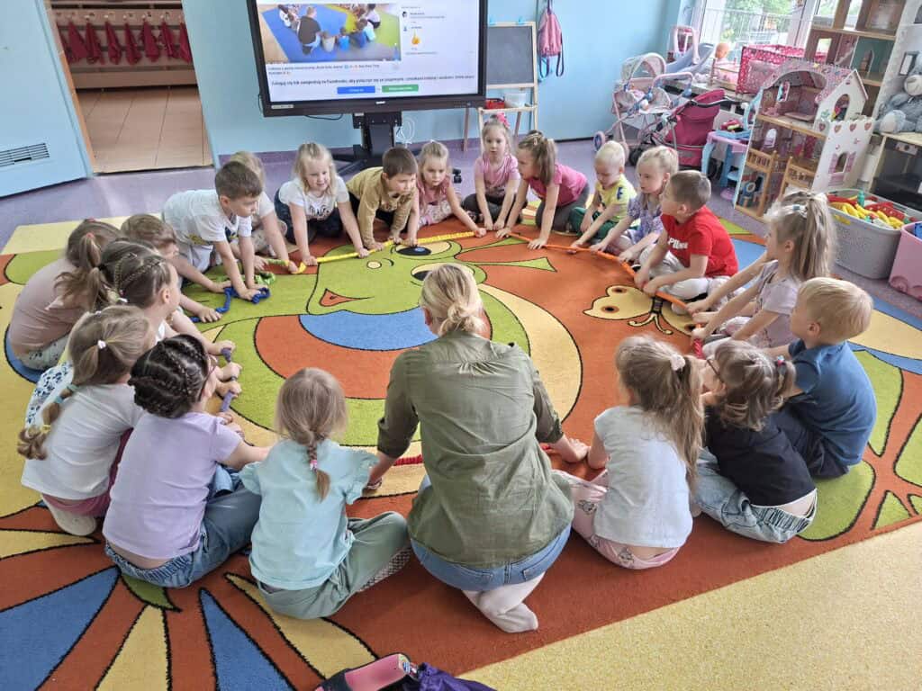 W maju dzieci miały możliwość wspólnych zabaw z wykorzystaniem gumy sensorycznej. Przy rytmicznych utworach dzieci rozwijały swoją muzykalność oraz umiejętność współpracy. Nowej zabawie towarzyszyło wiele radości i uśmiechu.