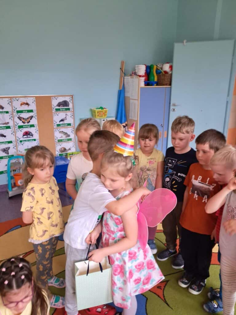 W maju aż 5 Biedronek zaprosiło nas do wspólnego świętowania z okazji swoich urodzin. Szóste urodziny obchodzili: Marcelinka, Jędrek, Martynka A., Martynka W. oraz Patrycja. Wszystkim naszym solenizantom śpiewano głośne „100 lat!”, składano życzenia oraz wykonano pamiątkowe rysunki. Dziękujemy Rodzicom za przygotowania słodkiego poczęstunku, którym dzieci mogły obdarować swoich przyjaciół. A naszym Biedronkom jeszcze raz życzymy spełnienia marzeń i wszystkiego najlepszego!