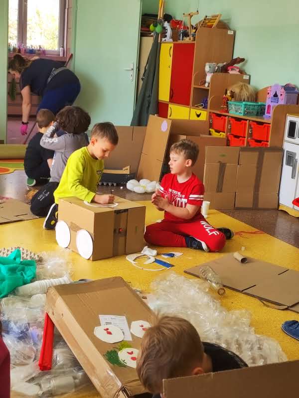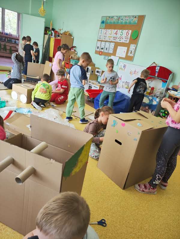 Szczególnym dniem był „Dzień bez zabawek”, który upłynął pod hasłem zabawy z ekologią. Dzieci tworzyły swoje własne zabawki z materiałów wtórnych – kartonów, rolek, nakrętek – ucząc się przy tym, jak w prosty sposób można dać drugie życie niepotrzebnym przedmiotom. Zabawa w duchu zero waste rozbudziła kreatywność dzieci i pogłębia ich świadomość ekologiczną.
