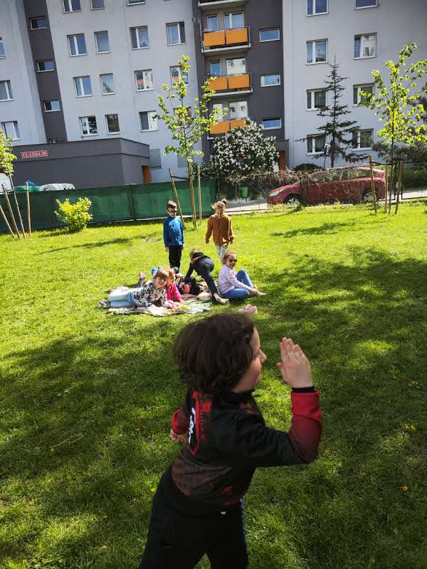 Nie zabrakło również czasu na aktywność fizyczną – podczas wyjścia na boisko dzieci mogły swobodnie biegać, grać w piłkę i cieszyć się piękną pogodą. Zabawy na świeżym powietrzu są nieodłącznym elementem zdrowego rozwoju, dlatego każda taka okazja była dla dzieci źródłem wielkiej radości.
