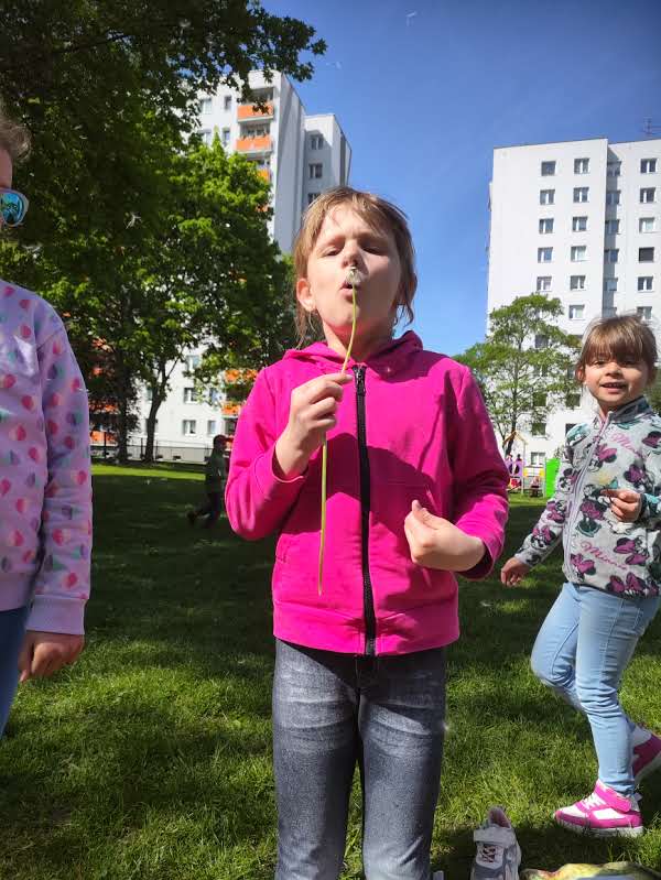 Na świeżym powietrzu dzieci obserwowały przyrodę i wykonywały kreatywne prace inspirowane naturą – m.in. dmuchawce, które stały się symbolem wiosennych zabaw w plenerze. W ramach obchodów Dnia Anglii dzieci poznały kulturę i zwyczaje tego kraju, a także utrwalały podstawowe zwroty w języku angielskim – wszystko w formie gier i zabaw dostosowanych do wieku przedszkolaków.