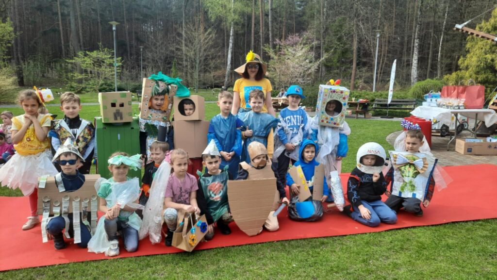 Ogromnym wydarzeniem był również udział w „Ekoludku” – przedszkolnym święcie ekologii. Żabki z zaangażowaniem przygotowały stroje z materiałów recyklingowych i zaprezentowały je podczas pokazu mody. W podziękowaniu dzieci otrzymały praktyczne, ekologiczne bidony, które będą im towarzyszyć w codziennych zabawach i przypominać o dbaniu o środowisko. Ich pomysłowość została doceniona – grupa zdobyła III miejsce w konkursie za swoją pracę “Ekocysterna”.