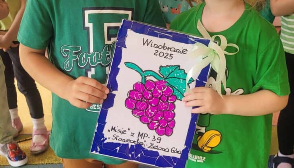 W naszym mieście przeżywaliśmy Dni Zielonej Góry. Z tej okazji gościliśmy w naszym przedszkolu Króla Winobrania – Bachusa. Misie przygotowały kolorowe pompony, którymi witały gościa. Wręczyły mu także własnoręcznie wykonaną wydzierankę – kiść winogron.