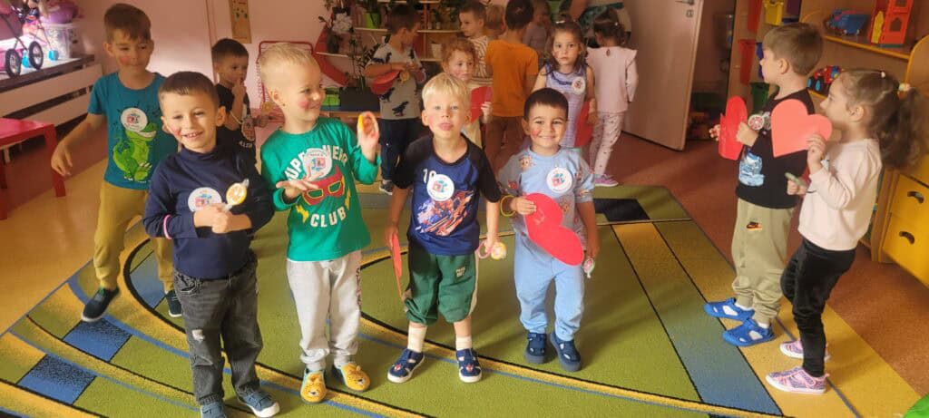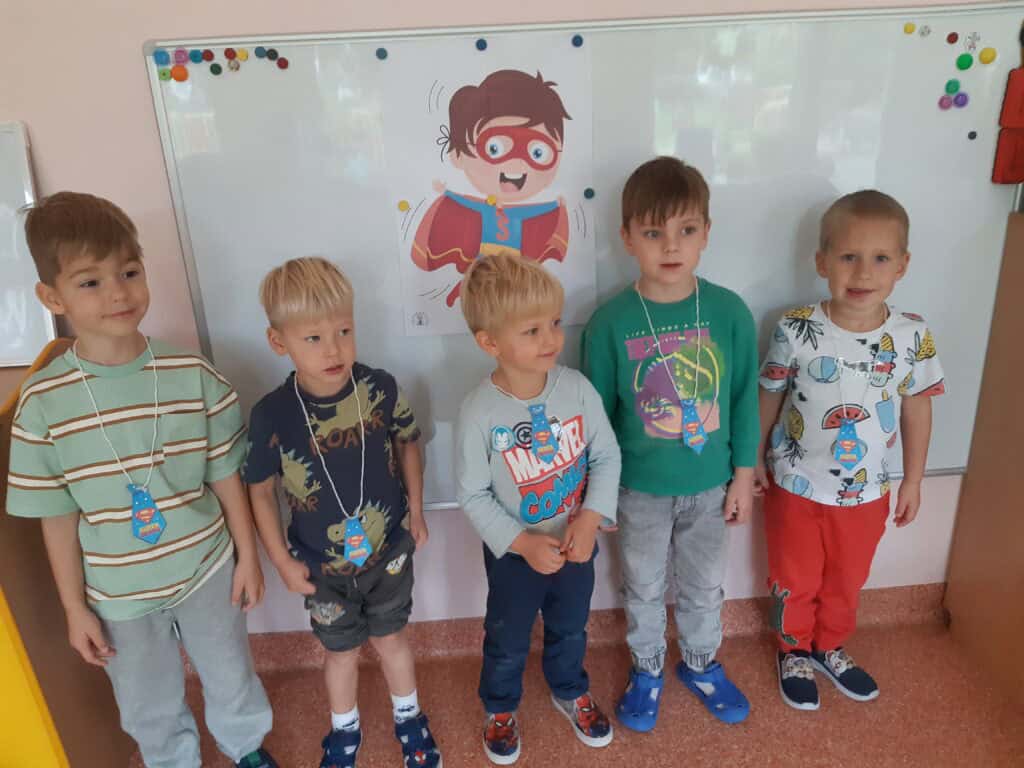 Od najmłodszych lat uczymy dzieci, aby pamiętały o ważnych uroczystościach w życiu rodziny czy przedszkola. Dlatego nie zapomnieliśmy również o Święcie Chłopców, które obchodziliśmy 30 września. Atrakcji tego dnia nie brakowało, chłopcy świętowali ten dzień biorąc udział w licznych konkursach, przeszli też test na Super Chłopaka. Chłopcy otrzymali drobne upominki przygotowane przez dziewczynki – krawat oraz lizaka z podobizną chłopaka. Był to dzień pełen wrażeń, radości i dobrej zabawy, a wykonane zdjęcia będą miłym wspomnieniem tych chwil.