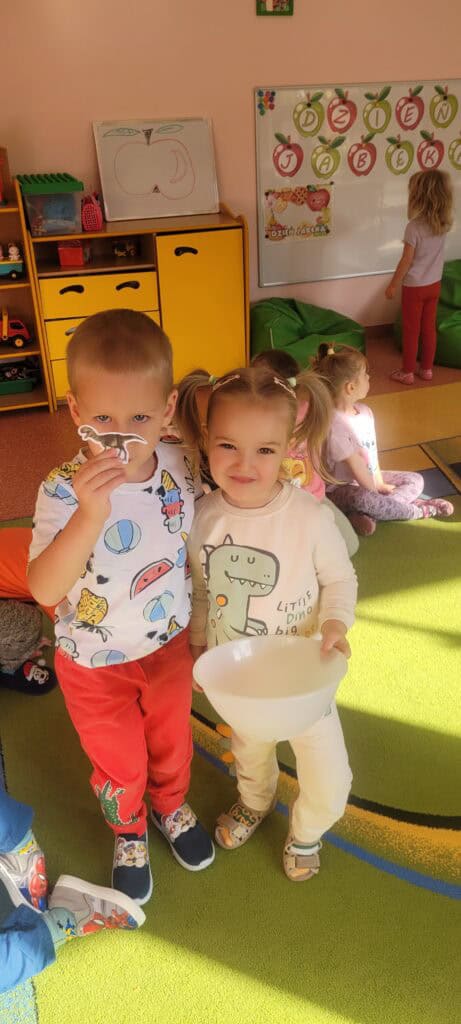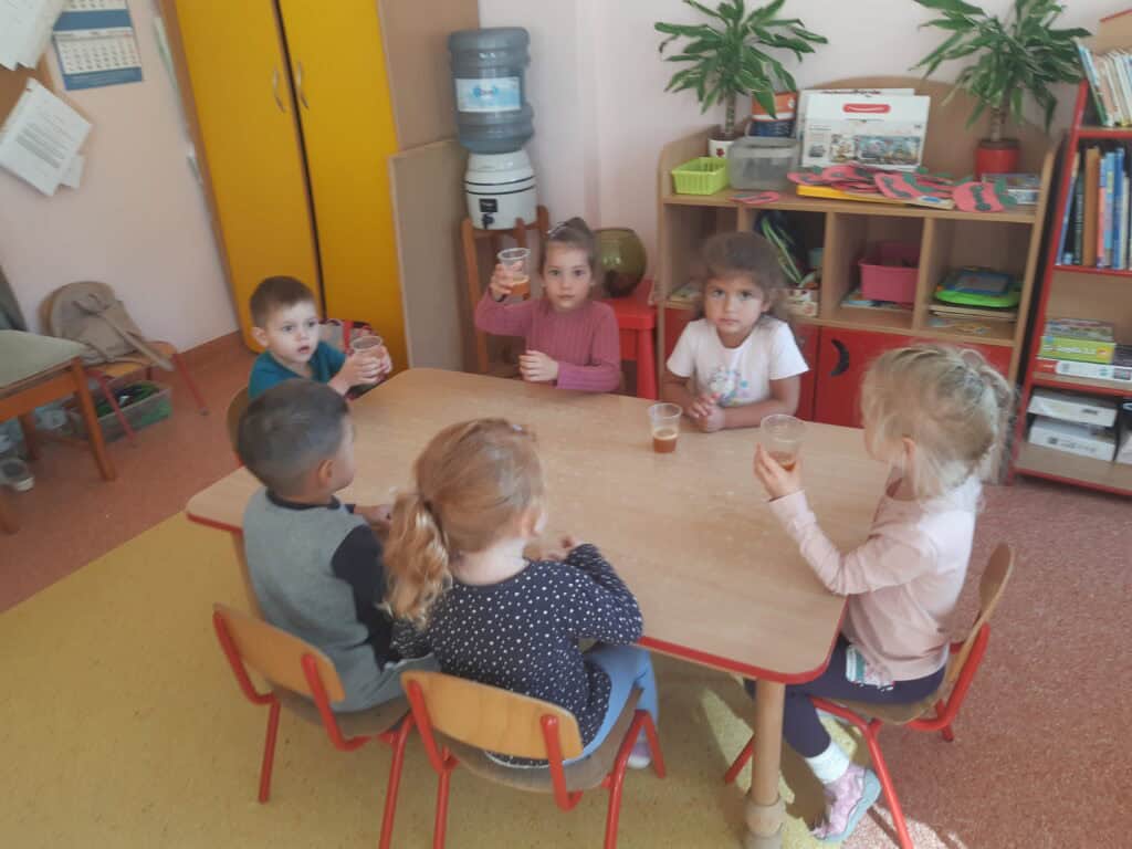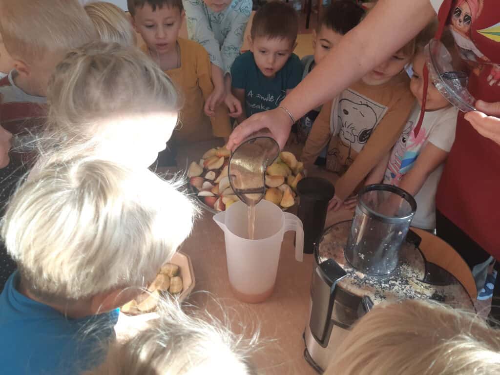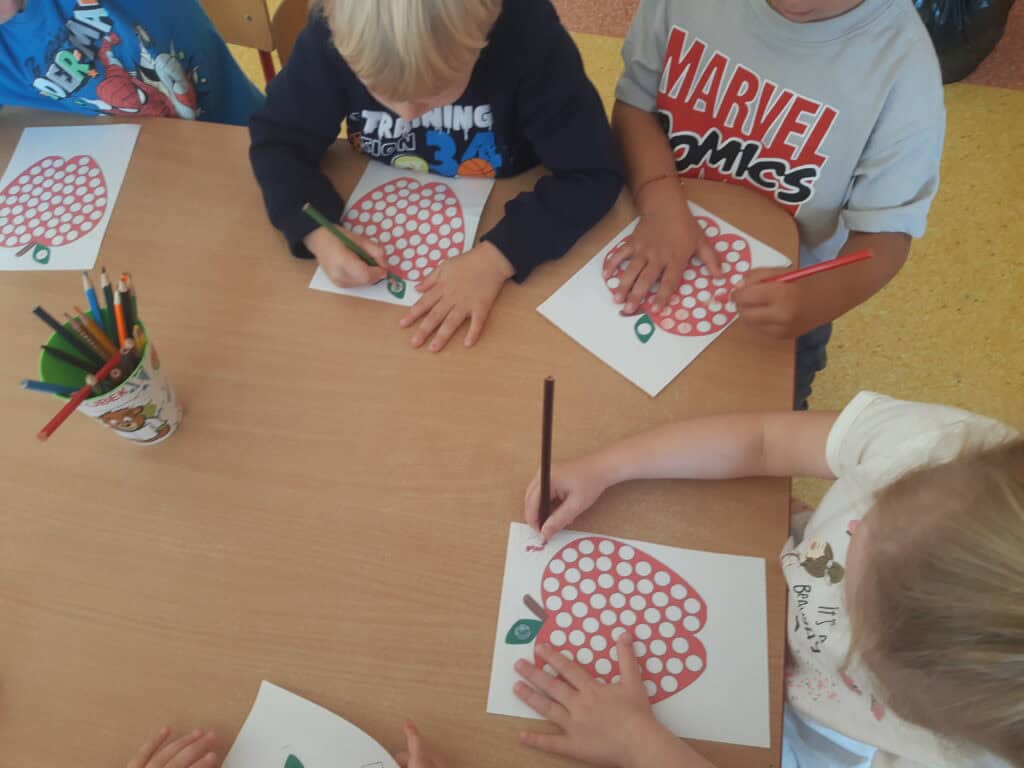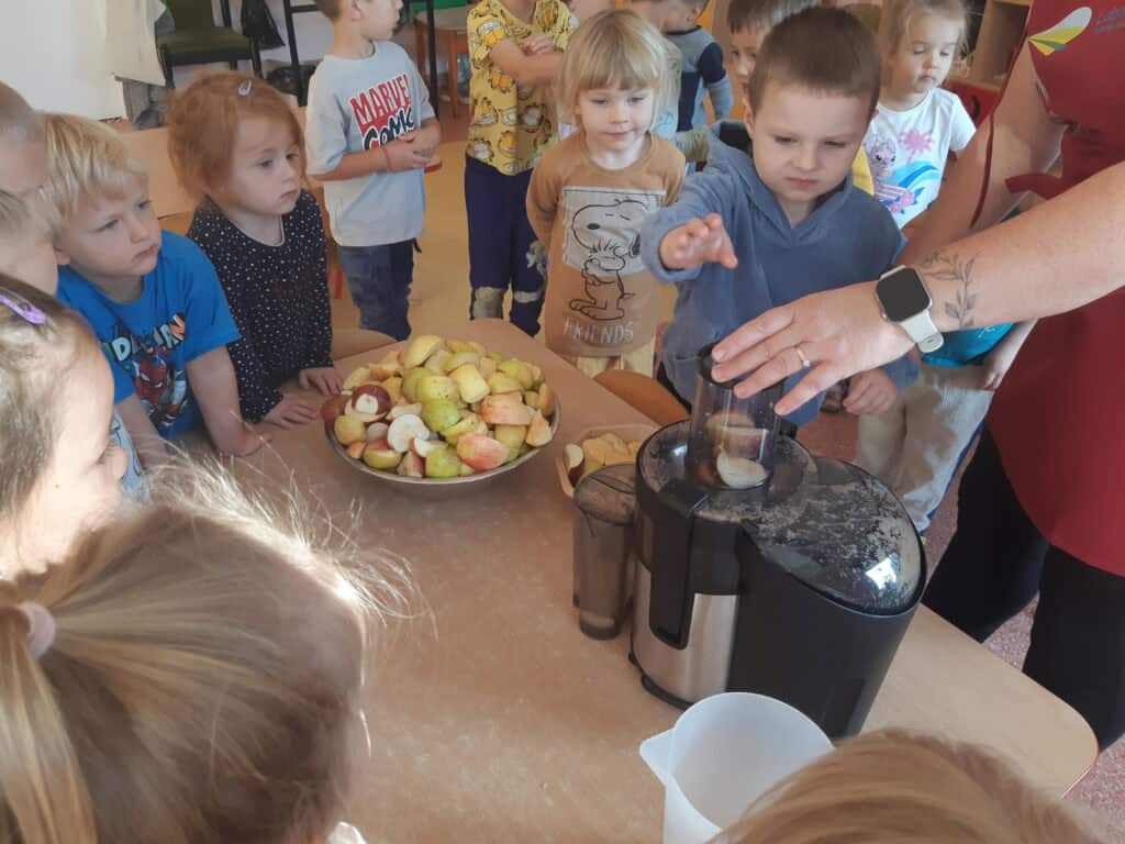 Podczas Święta Jabłka przedszkolaki poszerzały swoją wiedzę o jabłku: poznawały różne gatunki jabłek, kolory, kształty. Rozmawiały także o tym, co możemy przygotować z tych owoców. I nawet przygotowały pyszny, zdrowy sok jabłkowy. Dzieci wykazały się dużą spostrzegawczością podczas układania jabłuszkowych puzzli, porównywania wielkości oraz zręcznością w zabawie „Robaczek”. Na zakończenie zabaw związanych z tym dniem każdy wykonał wycinankę „Jabłuszko”. Dzień Jabłka zaliczamy do bardzo udanych i zachęcamy wszystkich do jedzenia jabłek, nie tylko od święta, bo to źródło zdrowia i witamin.