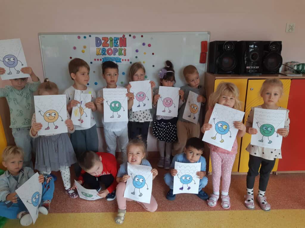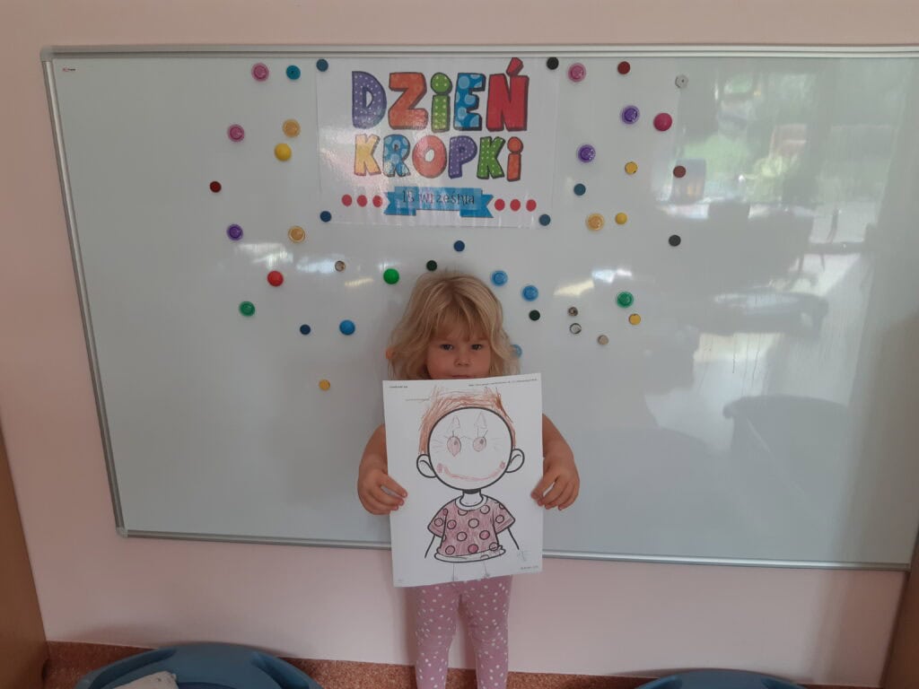 Nasza grupa w 15 września obchodziła wyjątkowe święto kreatywności i odkrywania talentów. Kropka towarzyszyła nam przez cały dzień. Były kropkowe dzieła sztuki, kropkowa matematyka, kropkowe opowiadanie oraz kropkowa gimnastyka. Kropki były nawet na naszych ubraniach. A wszystko po to, by pokazać naszym Misiom, że w każdym z nich drzemie talent, czasem po prostu jeszcze nieodkryty.
