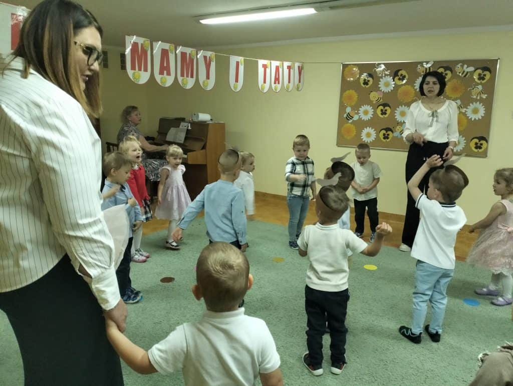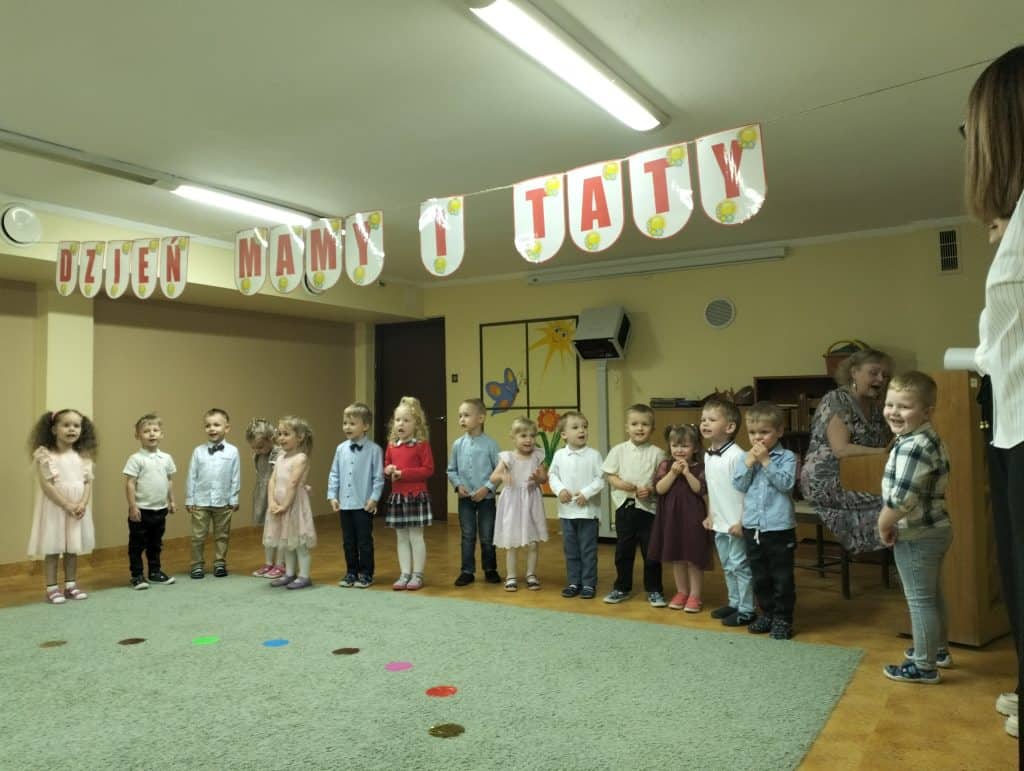 Miesiąc maj był wyjątkowo aktywnym i radosnym okresem w naszym przedszkolu, pełnym różnorodnych wydarzeń, które dostarczyły dzieciom mnóstwo wrażeń i radości. Jednym z najważniejszych była uroczystość z okazji dnia Mamy i Taty. Dzieci przygotowały wspaniały występ, w którym zaprezentowały swoje talenty wokalne i taneczne. Na zakończenie uroczystości dzieci wręczyły swoim rodzicom własnoręcznie wykonane przez nie obrazki z kwiatami. Całe wydarzenie przebiegało w ciepłej i rodzinnej atmosferze, a uśmiechy na twarzach wszystkich były najlepszym dowodem na to, jak ważne są chwile