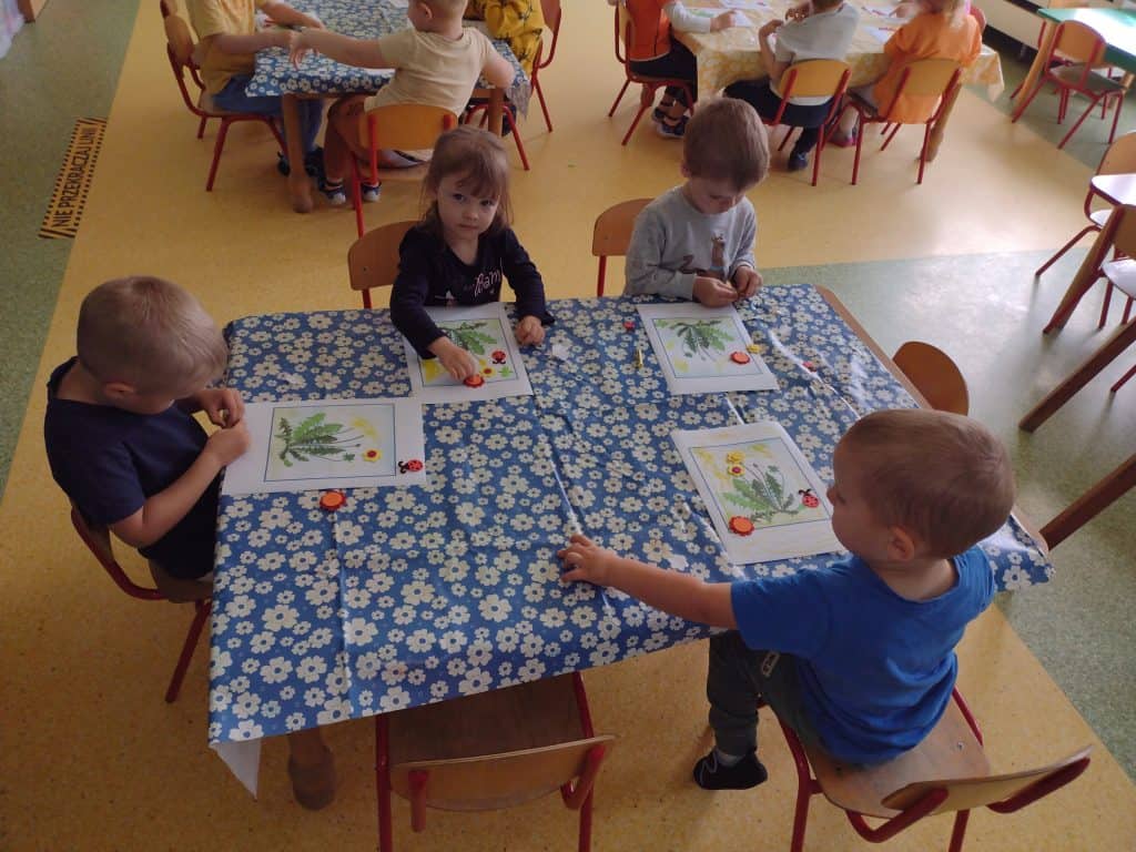 Na początku maja odbyły się inspirujące zajęcia plastyczne pod tytułem „Na łące”. Dzieci miały okazję wykazać się kreatywnością i umiejętnościami plastycznymi, tworząc piękne prace przedstawiające mniszek lekarski.