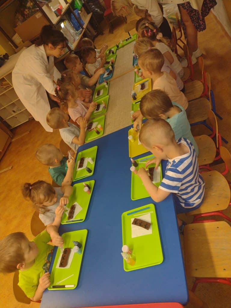 W maju nie zabrakło także zajęć w ramach „Krainy Eksperymentów”, w czasie których dzieci samodzielnie wykonały pachnące mydełka z gliceryny i kropelek zapachowych. Było to niezwykłe doświadczenie, które pozwoliło dzieciom poczuć się jak prawdziwi chemicy i stworzyć coś wyjątkowego.