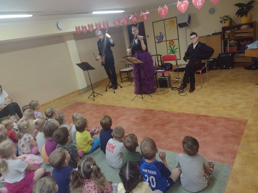 Jednym z ulubionych wydarzeń jest koncert muzyczny. Tym razem dzieci poznały dwa fascynujące instrumenty: skrzypce i kontrabas. Dzieci miały okazję usłyszeć na żywo piękne brzmienie tych instrumentów oraz dowiedzieć się więcej o ich budowie.
