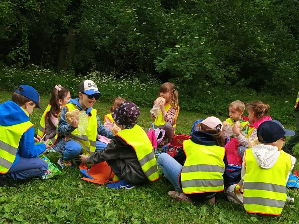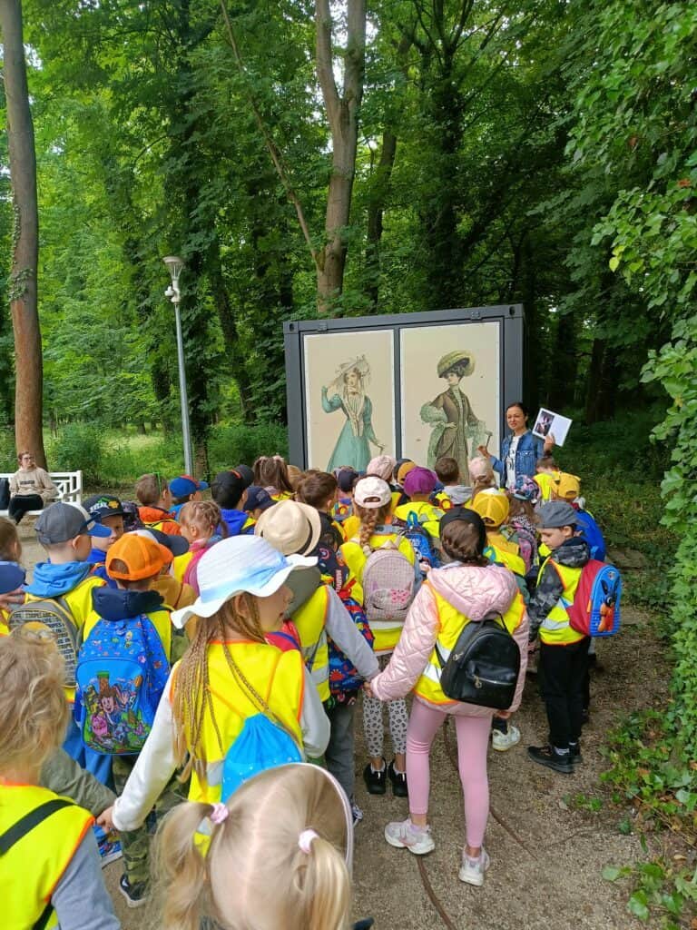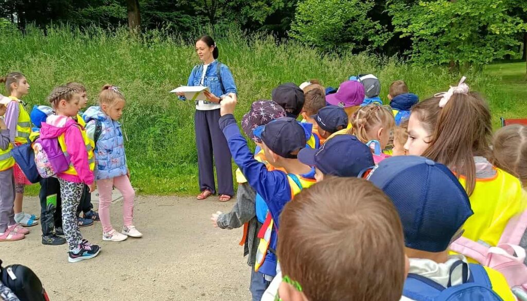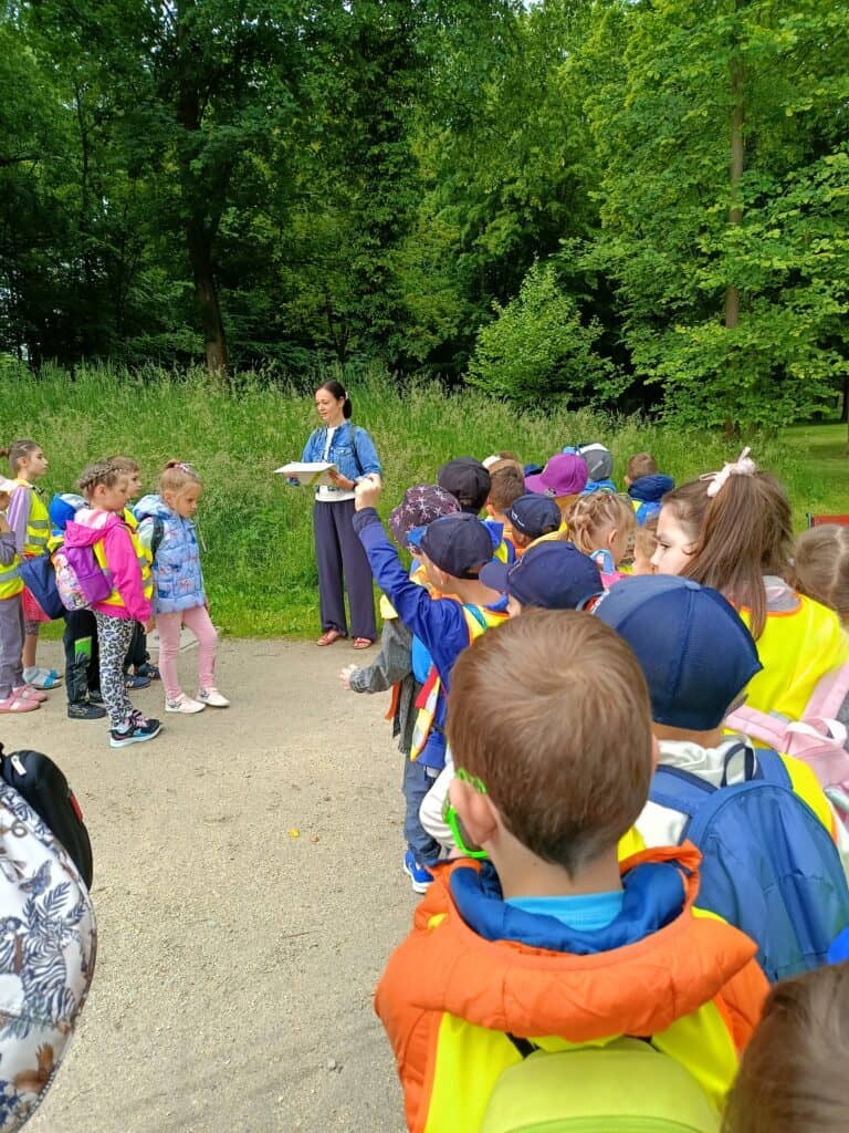 10 czerwca 2025 roku dzieci z grup: Żabki i Kotki, realizując treści programu własnego Agaty Galas „Zielona Góra – moja mała ojczyzna”, uczestniczyły w wycieczce autokarowej do Zatonia. Celem wyjazdu było poznanie piękna przyrody, lokalnej historii oraz wspólne spędzenie czasu na świeżym powietrzu. Po bezpiecznym dotarciu na miejsce, na przedszkolaków czekała przewodniczka, która z wielkim zaangażowaniem oprowadziła nas po najciekawszych zakątkach parku książęcego. Dzieci dowiedziały się wielu interesujących faktów o historii tego miejsca, a szczególnym zainteresowaniem cieszyły się ruiny dawnej rezydencji książęcej, które pobudziły wyobraźnię małych odkrywców. Po spacerze edukacyjnym dzieci miały okazję zjeść pyszne lody i odpocząć w cieniu drzew. Następnie nadszedł czas na zabawę – dzieci swobodnie biegały po trawie, bawiły się z kolegami i korzystały z pięknej pogody. Cała wycieczka przebiegła w radosnej atmosferze, a mali podróżnicy wrócili do przedszkola z uśmiechami na twarzach, pełni wrażeń i nowych doświadczeń.