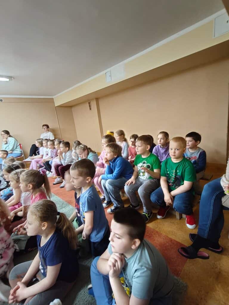 Podczas spotkania dzieci poznały również instrument perkusyjny – kaho (cajón). Wspólnie zastanawiały się, jakie dźwięki zwierząt może on przypominać, co było ciekawym doświadczeniem rozwijającym wyobraźnię słuchową. To muzyczne spotkanie było niezwykle interesującą lekcją, łączącą elementy edukacyjne z zabawą i aktywnym uczestnictwem. Dzieci nie tylko poznały nowe instrumenty i ich brzmienie, ale także przeniosły się w świat wyobraźni, pełen przygód, muzyki i emocji. Na zakończenie wszyscy nagrodzili artystów gromkimi brawami.